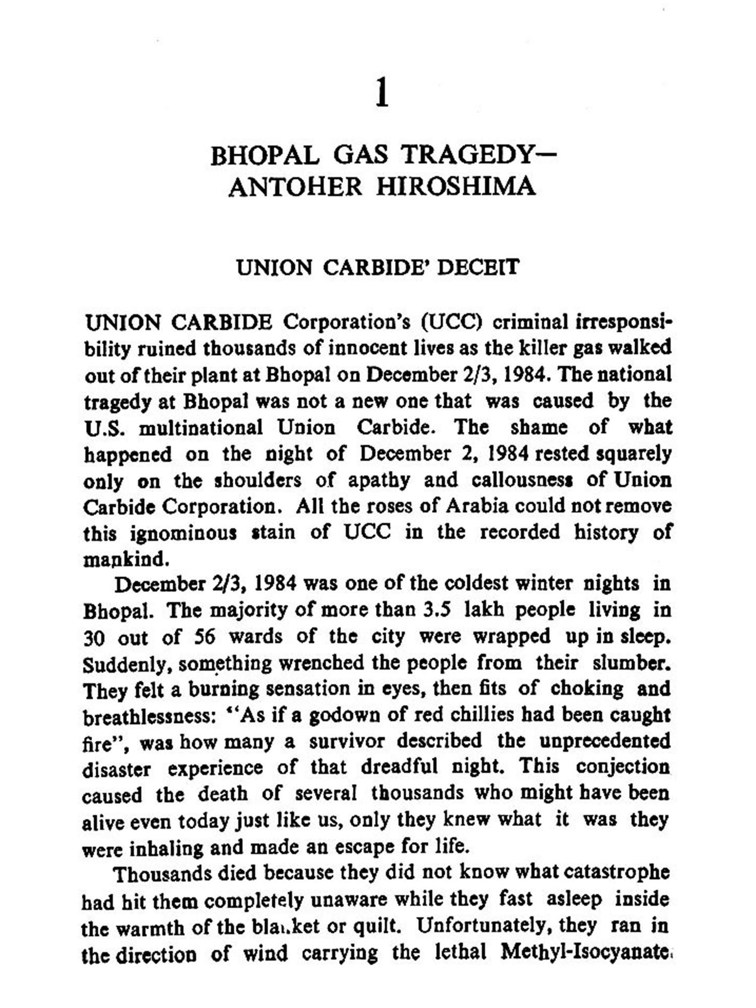 Environmental Pollution and Bhopal Killings