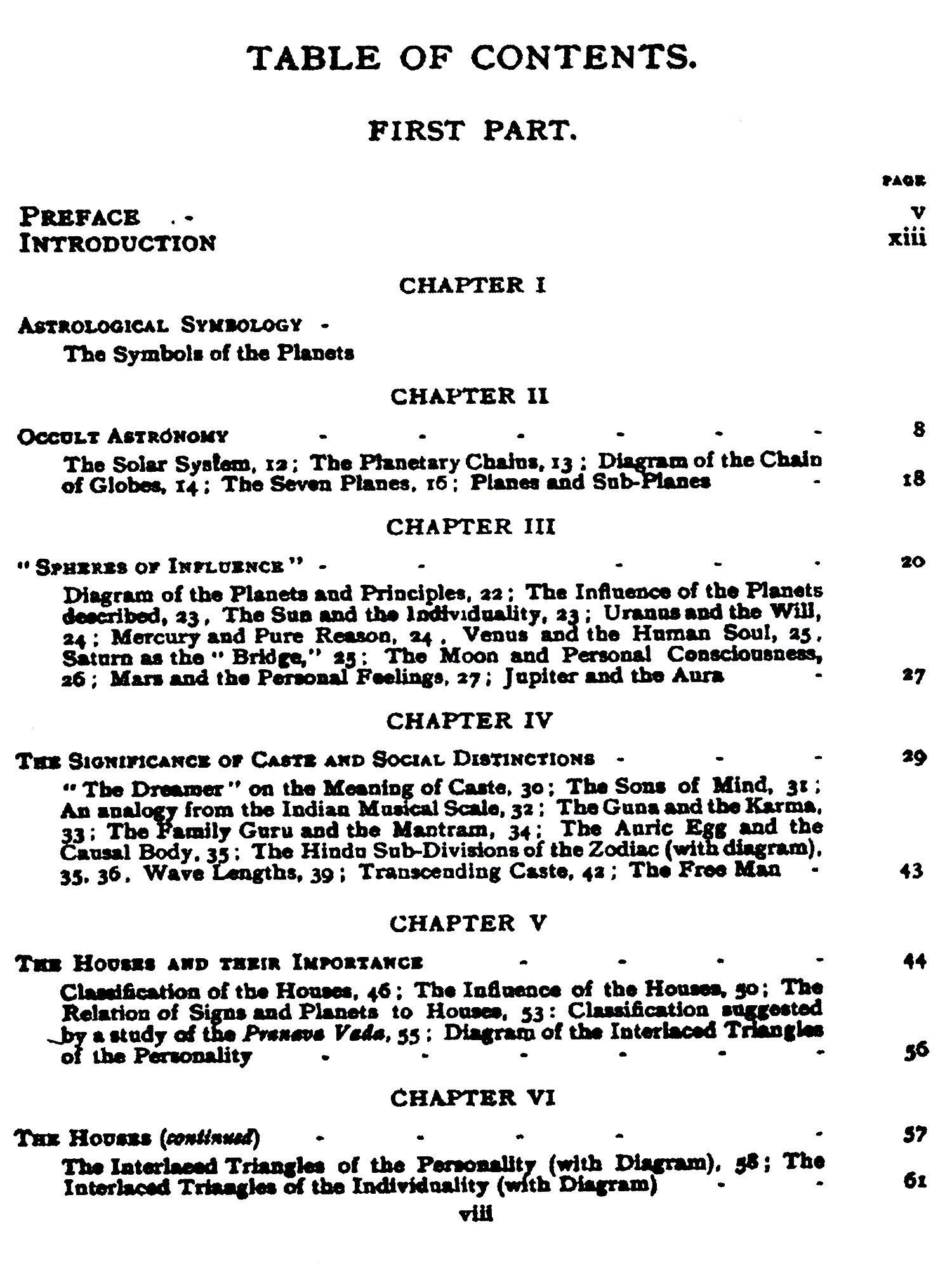 It was not until I had made a second visit to India that I was able to obtain the clue to the central idea that could unify all my numerous thoughts upon the subject of Esoteric Astrology. In one of the Holy Places, I met a sage whose mind and my own were in complete harmony. I had only to express a few ideas to this marvellous Pundit, and he would run through the whole sequence of my thought and in a few words link those ideas into a consecutive whole to achieve which I had laboured many years. At one of our meetings, he spoke but a few words, but with them he conveyed to my mind ideas which illuminated my thoughts to such an extent that I instantly saw light to which I had been formerly blind. On one occasion we rode many miles in an old gharry to visit an ancient Temple, and while he chanted his sacred hymns continuously, my mind was filled with beautiful thoughts suggesting the very questions a sage alone could answer.