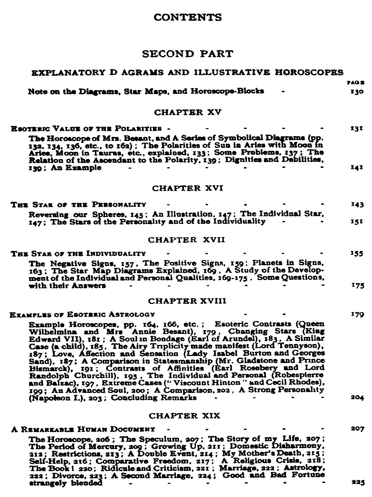 Born of Puritan parents, strict in moral and religious principles, and brought up to believe that if not chosen for eternal bliss the only alter-native was everlasting torment, it was natural that the problems of a life that seemed so complex to a youthful mind should engage my deep and earnest attention. Many years of anxious striving to understand why I had been born into this world without apparently having asked to come, and many visits to religious teachers of all types, brought the conviction that either the religious teachings regarding heaven and hell were false, or that the God I had heard about was unjust; and as I could not believe that which I did not understand or know to be true, I concluded that I must be one of the lost souls. My dear good mother, a devout Christian, converted at the age of 11, who had made it the habit of her life to pray for two hours each morning on waking, besought God that I might be saved; but her prayers did not succeed in commending to me her peculiar way of thinking and believing; and years afterwards, in the darkest hours of my life, the light of Wisdom came through Astrology.