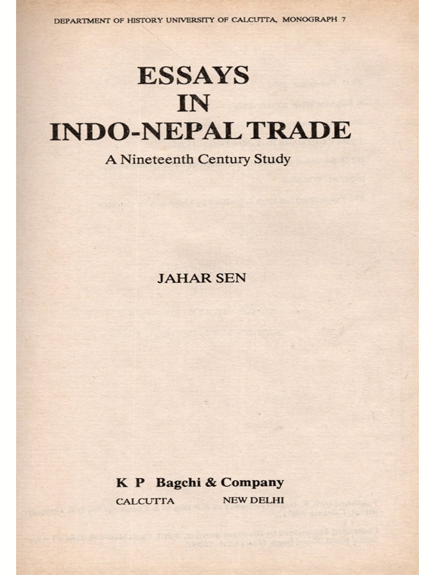 The essays represent distinctly a companion volume to my book, Indo-Nepal Trade in the Nineteenth Century (Calcutta, Firma KLM, 1977). I have attempted to utilize as best as I could the primary sources culled from archival materials. Some of my research papers already published in the Calcutta Historical Journal and the Proceeding of the Indian History Congress, added with new materials and revised in the light of suggestions offered by competent scholars, have been incorporated in this collection of essays. My grateful thanks go to the editors of the aforesaid journals and the proceeding volumes for the kind encouragement they extended to me.