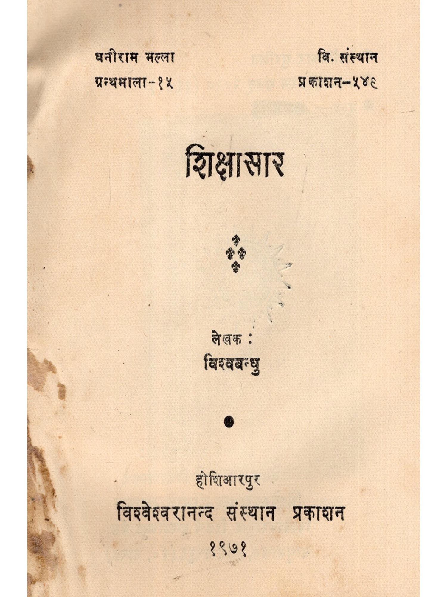 स्वर्गीय भल्ला जी की पुण्य स्मृति में अप्रैल २६, १६५२ को उनकी दुवरसी के अवसर पर 'धनीराम भल्ला ग्रन्थमाला' का आरम्भ किया गया था। उस ग्रंथमाला का यह 'शिक्षासार' पन्द्रहवां पुष्प है।