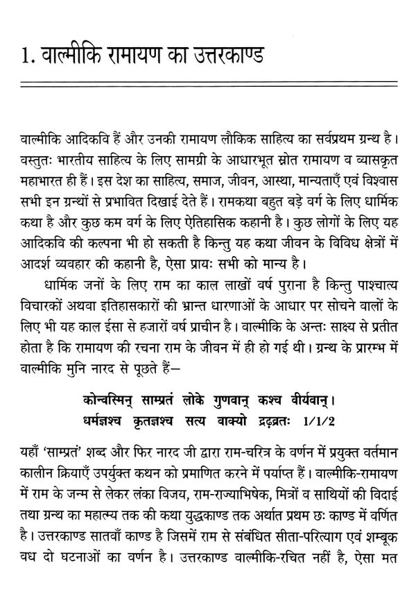 इस पुस्तक के अनेक लेख पत्र-पत्रिकाओं और अन्य पुस्तकों में स्थान पा चुके हैं। अतः बहुत से पाठक इसे पुनरावृत्ति भी कह सकते हैं, उनके सम्मुख मैं क्षमाप्रार्थी हूँ, किन्तु मैं यह दुस्साहस भगवान श्रीराम के नाम-सम्बल पर ही कर रहा हूँ क्योंकि मुझे लगता है कि यह एक यज्ञ है। इसी कारण 'वाल्मीकि रामायण का उत्तरकाण्ड' एक दर्जन से भी अधिक पत्र-पत्रिकाओं में प्रकाशित हो चुका है।