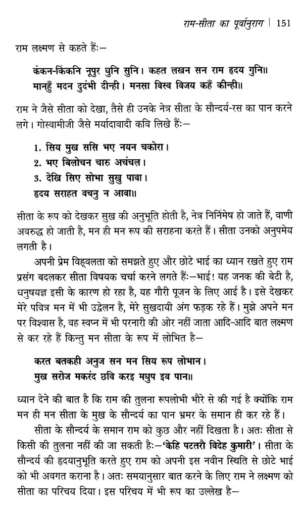 इस ग्रन्थ को मूर्त रूप देने का समस्त श्रेय 'अनामिका प्रकाशन' के स्वामी 'अनिल जी' को ही जाता है, जिन्होंने मेरे संकेत मात्र से प्रकाशन के लिए अपनी स्वीकृत दे दी। अन्त में आदि कवि भगवान् वाल्मीकि व प्रातः स्मरणीय गोस्वामी तुलसीदास के श्रीचरणों में प्रणाम करता हूँ, जिनकी कृपा से मुझ अल्पज्ञ को भी लेखक होने का गौरव प्राप्त हुआ है।