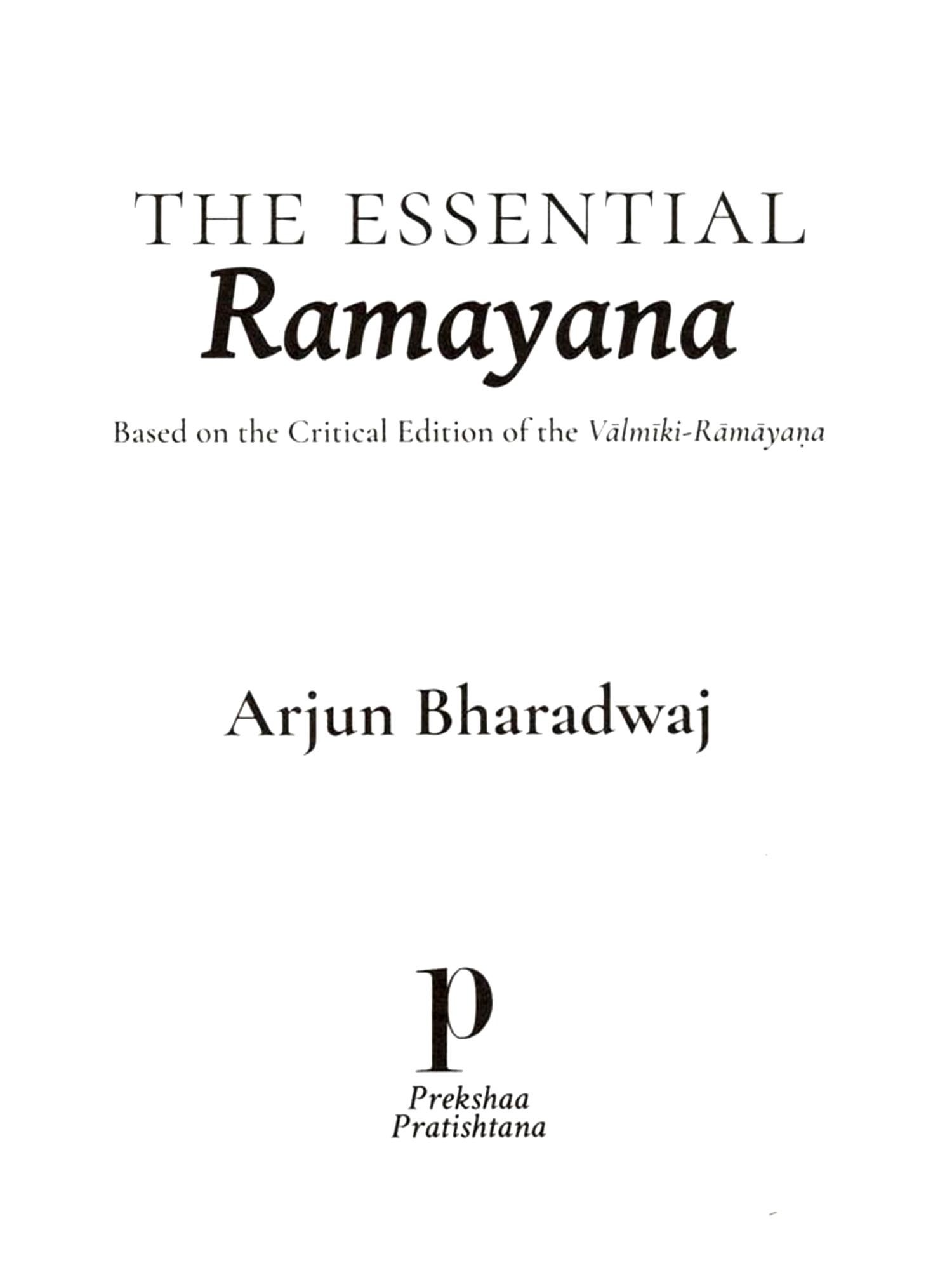 The idea to write the present book took shape during a conversation with the Prekshaa team. We were discussing how the epic is being misrepresented and misunderstood in today's world and wondered how we could contribute towards rectifying the problem. It occurred to me that the least we could do was to provide a readable English abridgement of the critically constituted text, ensuring that we do not miss the aesthetic and spiritual nuances of the original. I felt writing the current book would be the best way to repay the rsirna and ananda-mas. When I put forth my idea, Satavadhani Dr. R Ganesh and the Prekshaa family immediately encouraged me and my dear friends including Sri Hari Ravikumar came forth to support the project. I decided that I will follow the grand but challenging path paved by Prof. AR Krishnasastri, doyen of Kannada and Sanskrit literature and aesthetics. His Vacana-bharata, a rime-tested classic, captures the Mahabharata in such chiselled and appealing language that it has been hailed as a model for Kannada prose; and the process by which he has condensed the epic is an evergreen template for retelling of epics. Prekshaa published an English rendering of the Vacana-bharata with the title The Essential Mahabharata, the work has received appreciation from the lay and the learned alike. The current work is an attempt to provide a Ramayana companion to the volume on the Mahabharata.