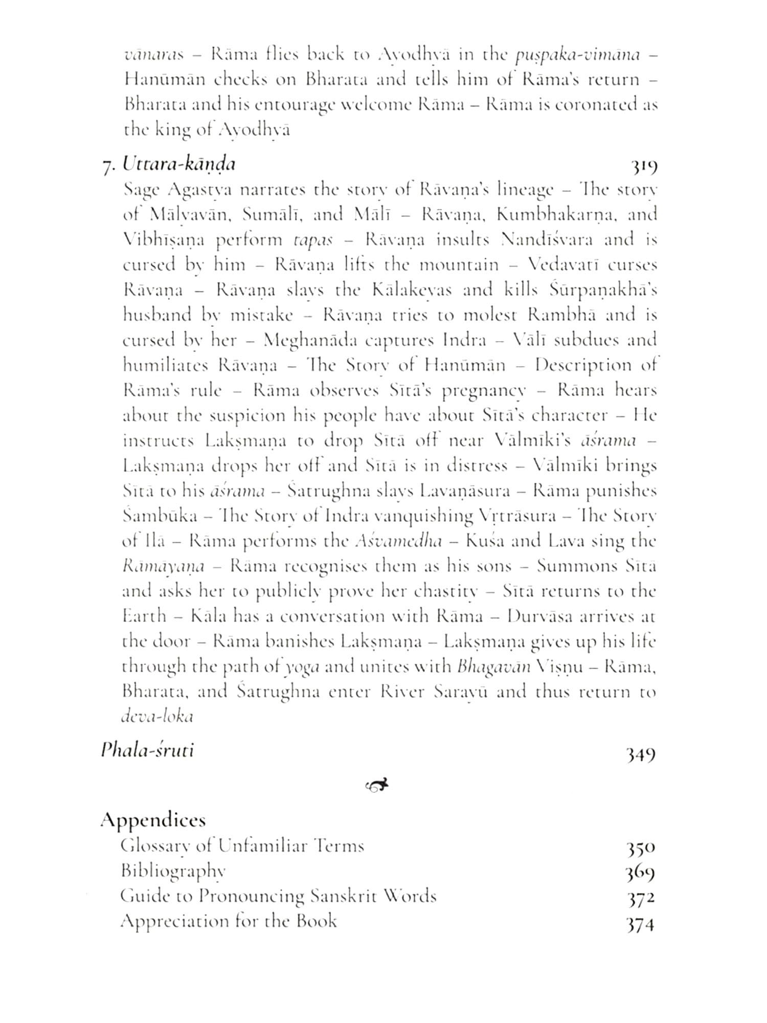 Indians have always been intimately familiar with the epic, while poets and artists across the length and breadth of Akhanda-bharata have used their creative liberty in retelling the story through their artistic media. However, of late, there is a great deal of confusion regarding what the 'true' Ramayana is. It is impertinent and incorrect to jump to conclusions about the epic without thoroughly understanding the original treatise. The current work is an attempt to present the epic in a simple and condensed form in order to enable readers of all age groups and backgrounds to access the original. It can work as the first but the right step to approach the epic. Upon reading the work, I am confident that readers will get a fairly good sense of what the Ramayana is-and it will motivate them to dive deeper into its layers. It may even become a doorway for readers to learn the Sanskrit language and to peruse through the first and the most profound poem of mankind, in fact, reading the Ramayana in the original would be the best way to hone one's skills in using the Sanskrit language this is a benefit that the epic can pro-vide over and above enriching one's life with sublime values.