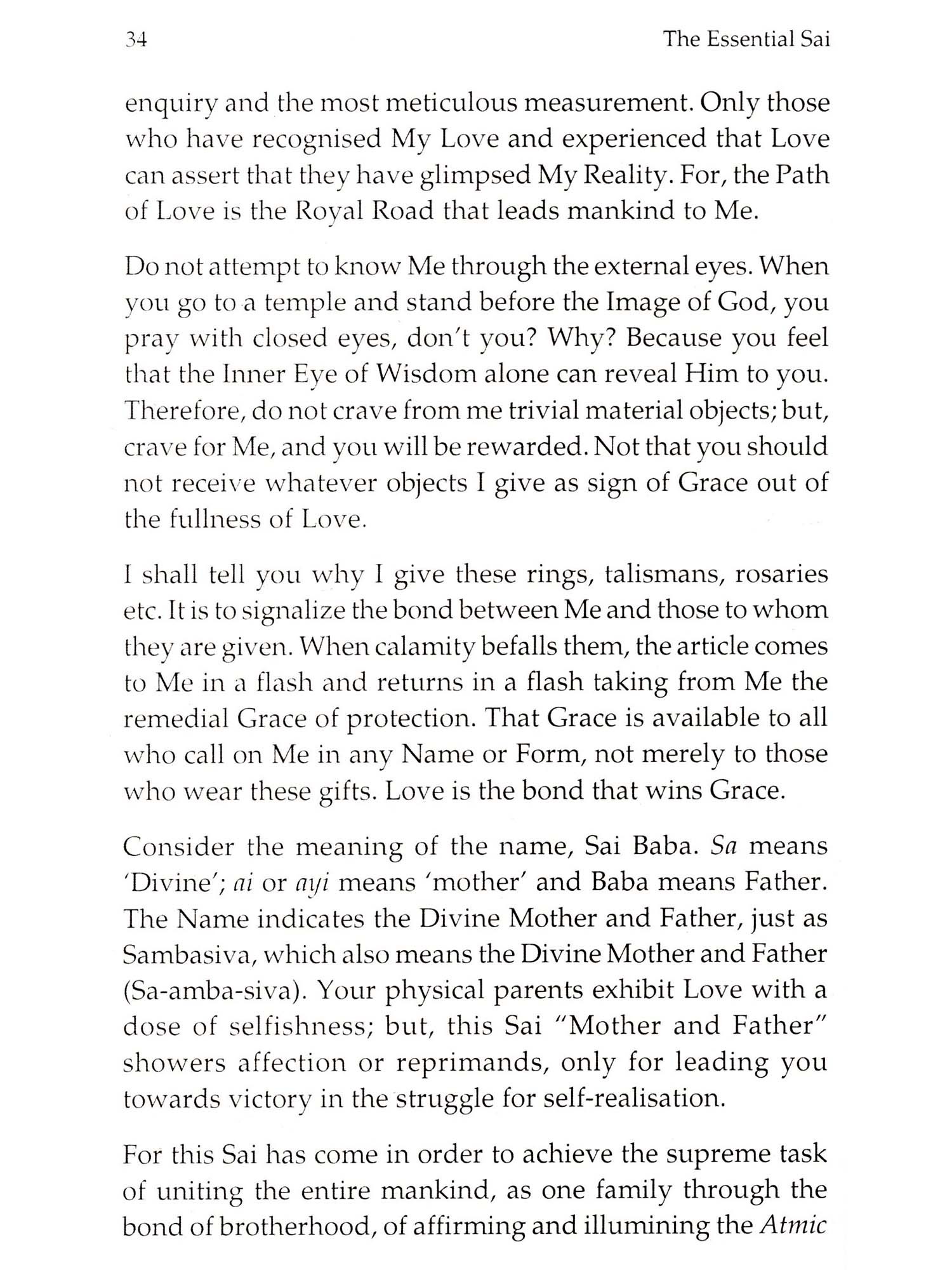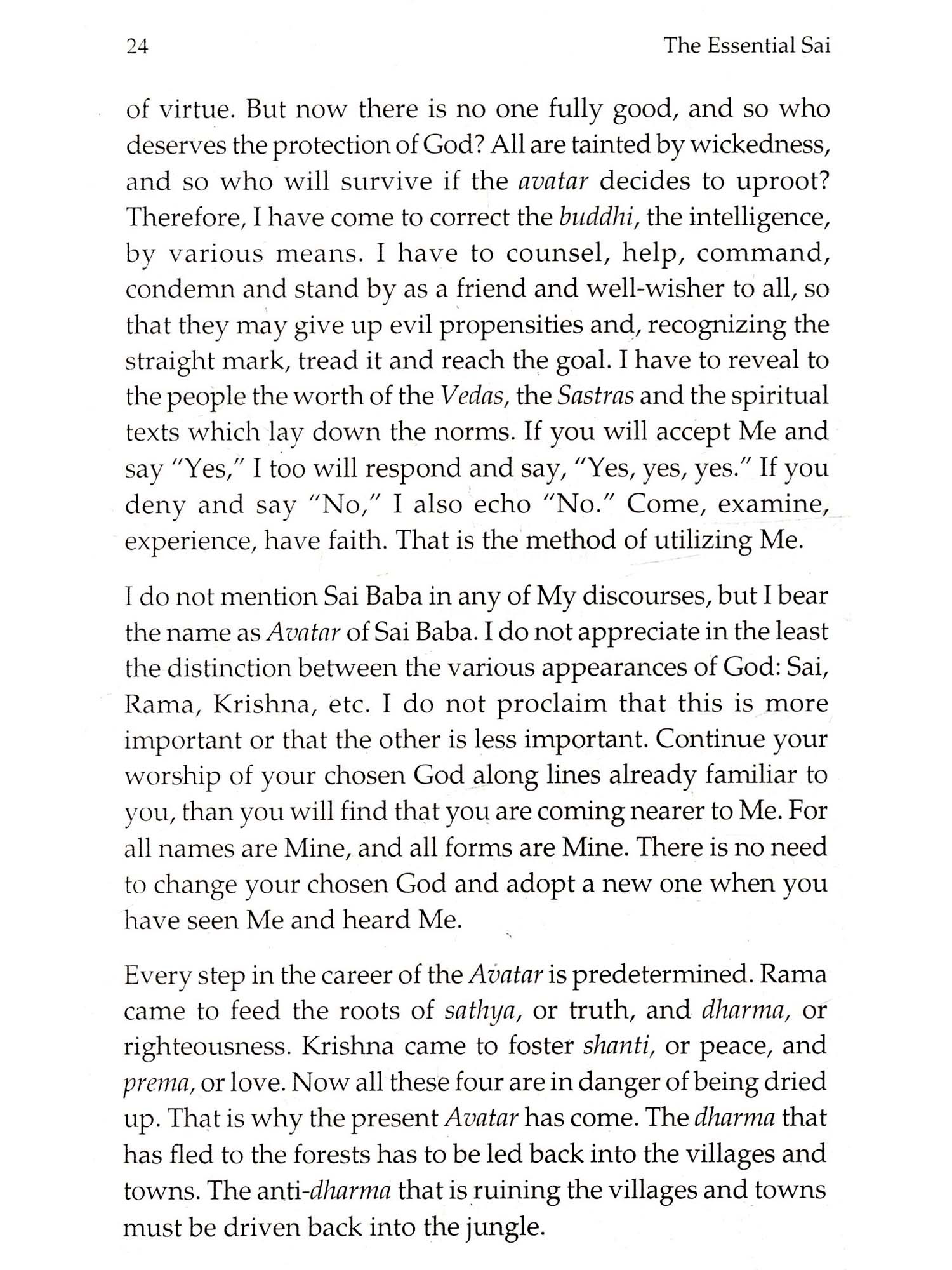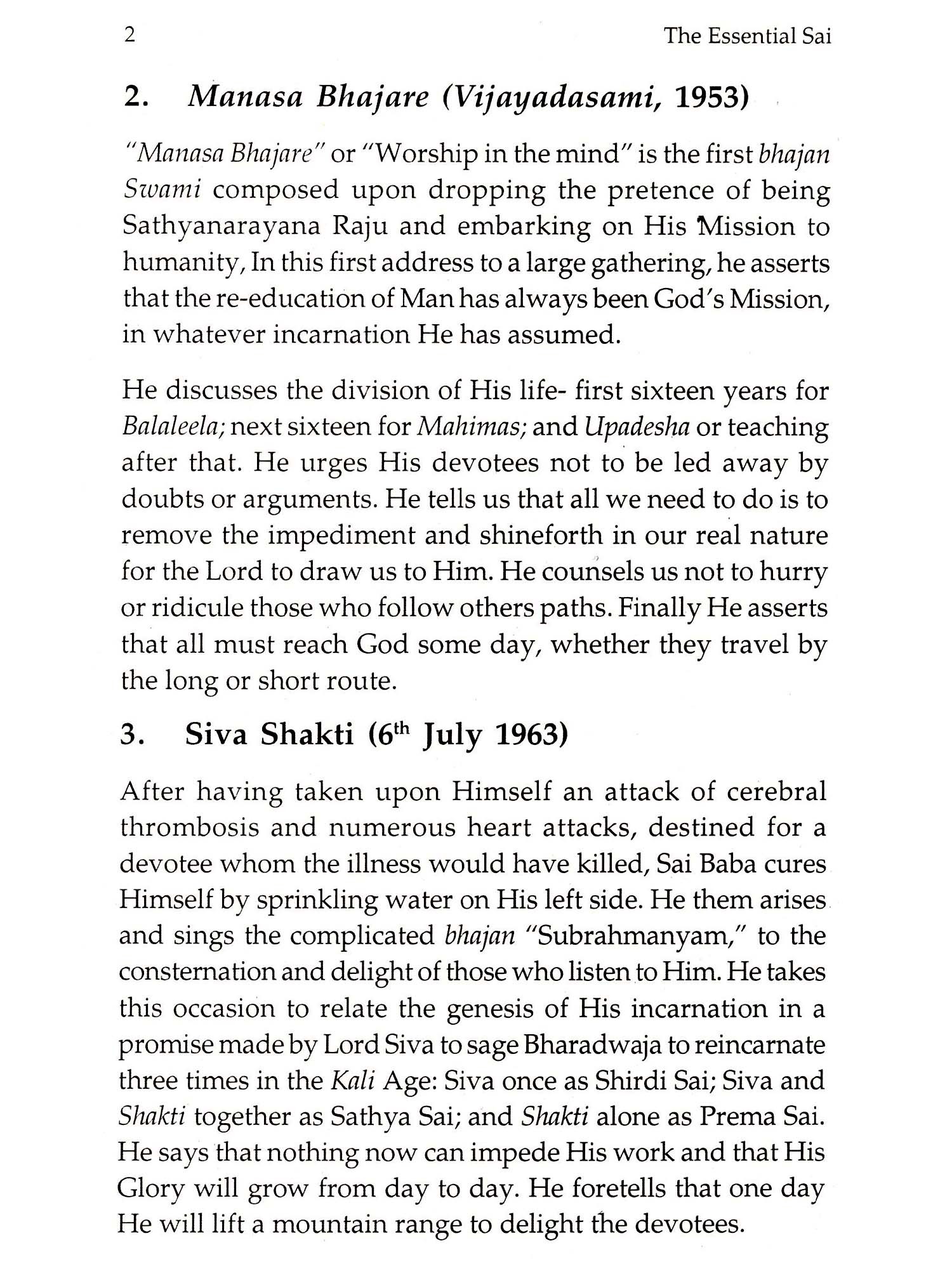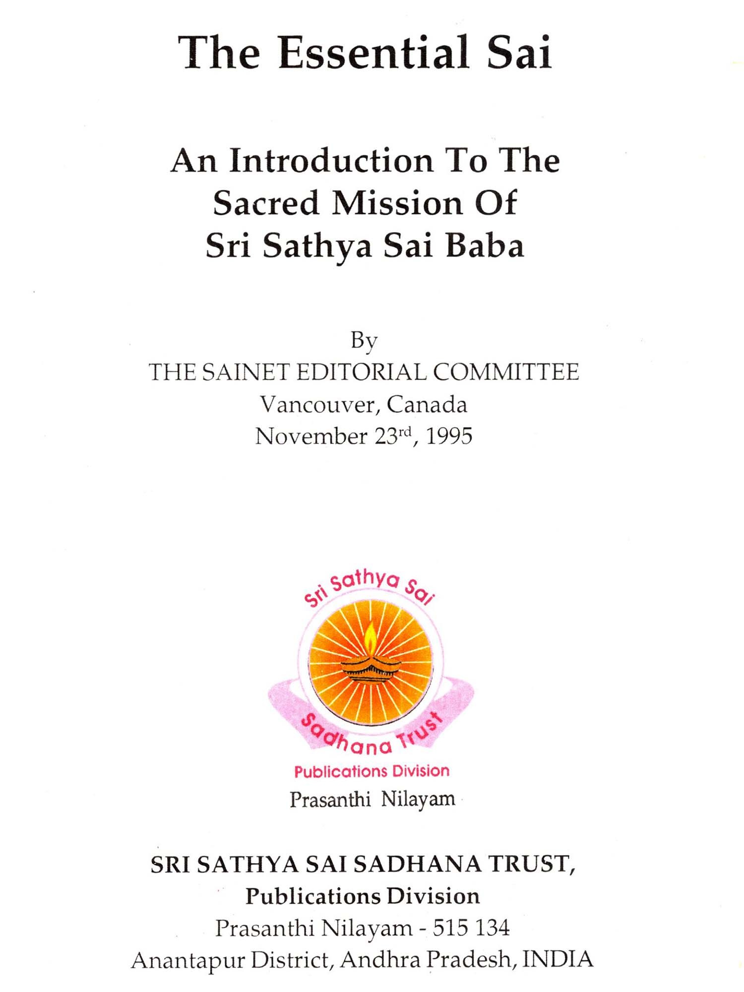 Indeed an essential reading for one, who seeks to acquaint himself with the Avatar of the Kali age, 'The Essential Sai' introduces readers to a comprehensive array of knowledge about our beloved Swami and His mission. Spanning diverse subjects, like Who Is Sai?, Baba's Mission, Social Transformation, and Sai Seva, 'The Essential Sai' is a compendium of nectarous discourses that answer almost all conceivable doubts and enlightens its readers. It is not an ordinary book, but an extraordinary one that gives unto readers the words of the Avatar, God Himself.