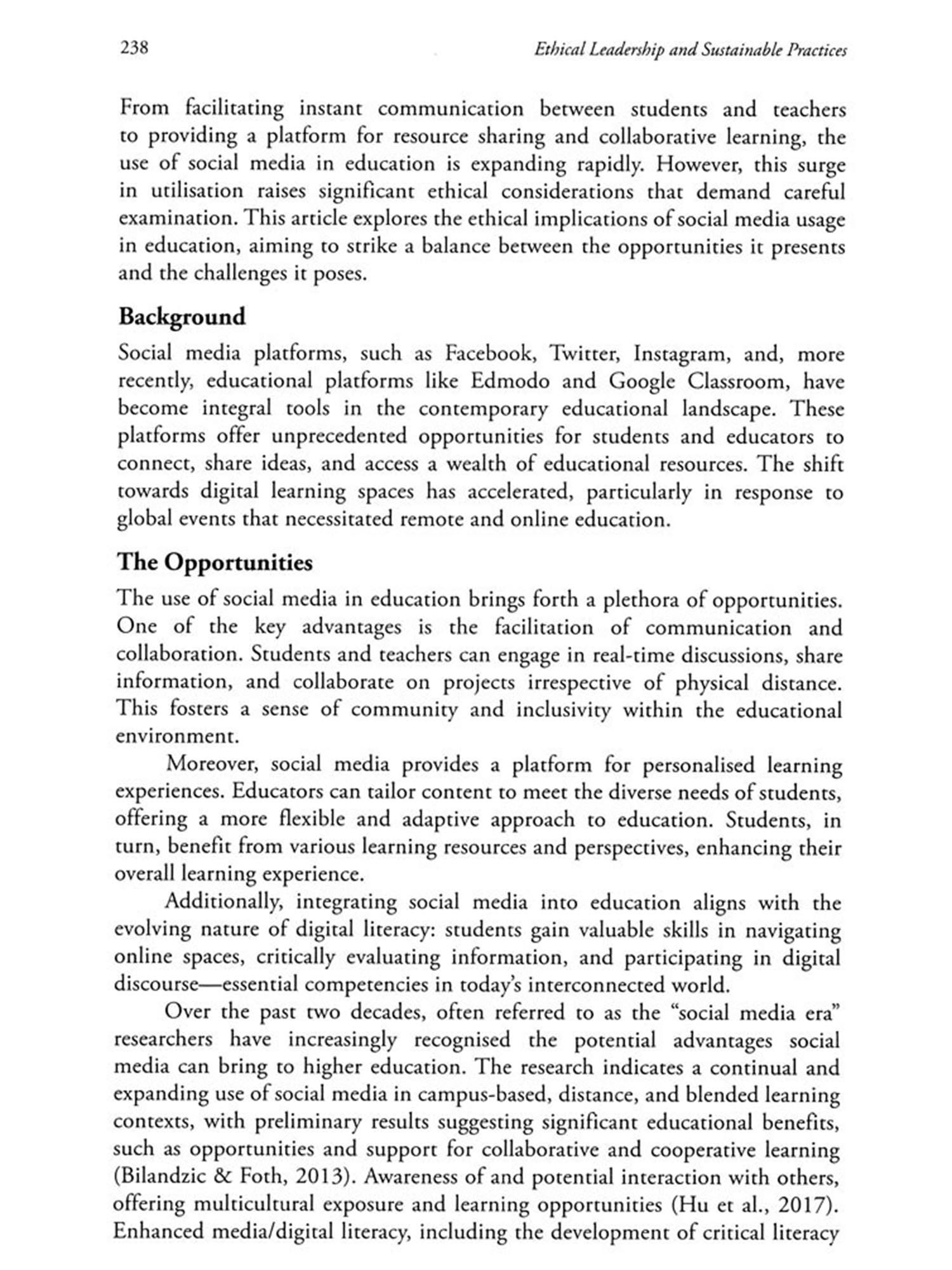 Finally, I extend my heartfelt congratulations to the editor and contributors for their outstanding work. I am confident that this volume will serve as a valuable resource, inspiring readers to embrace ethical leadership and sustainable practices. I invite you to engage with the thought-provoking discussions presented in this book and to join us on the path towards a future where business success is measured not only by financial outcomes but also by the positive impact on the larger society and the wider environment.