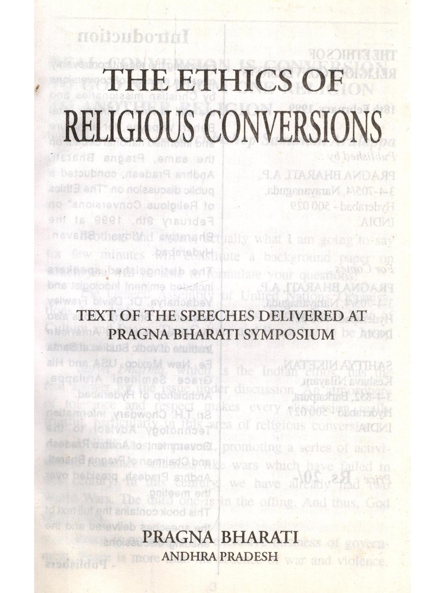 Following the recent controversy over the process of conversions by Christian missionaries and the call of Prime Minister, Atal Behari Vajpayee, for a mature and informed national debate on the same, Pragna Bharati, Andhra Pradesh, conducted a public discussion on "The Ethics of Religious Conversions" on February 9th, 1999 at the. Bharatiya Vidya Bhavan, Hyderabad.