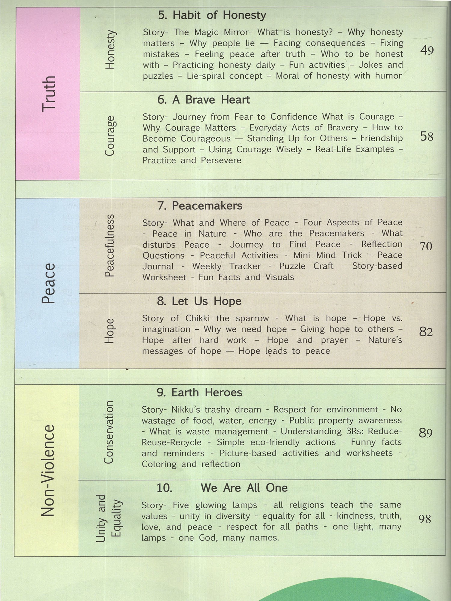 Level 4: Ideal for nurturing manners, Kindness, Honesty, Courage, Peace and Hope in young children.