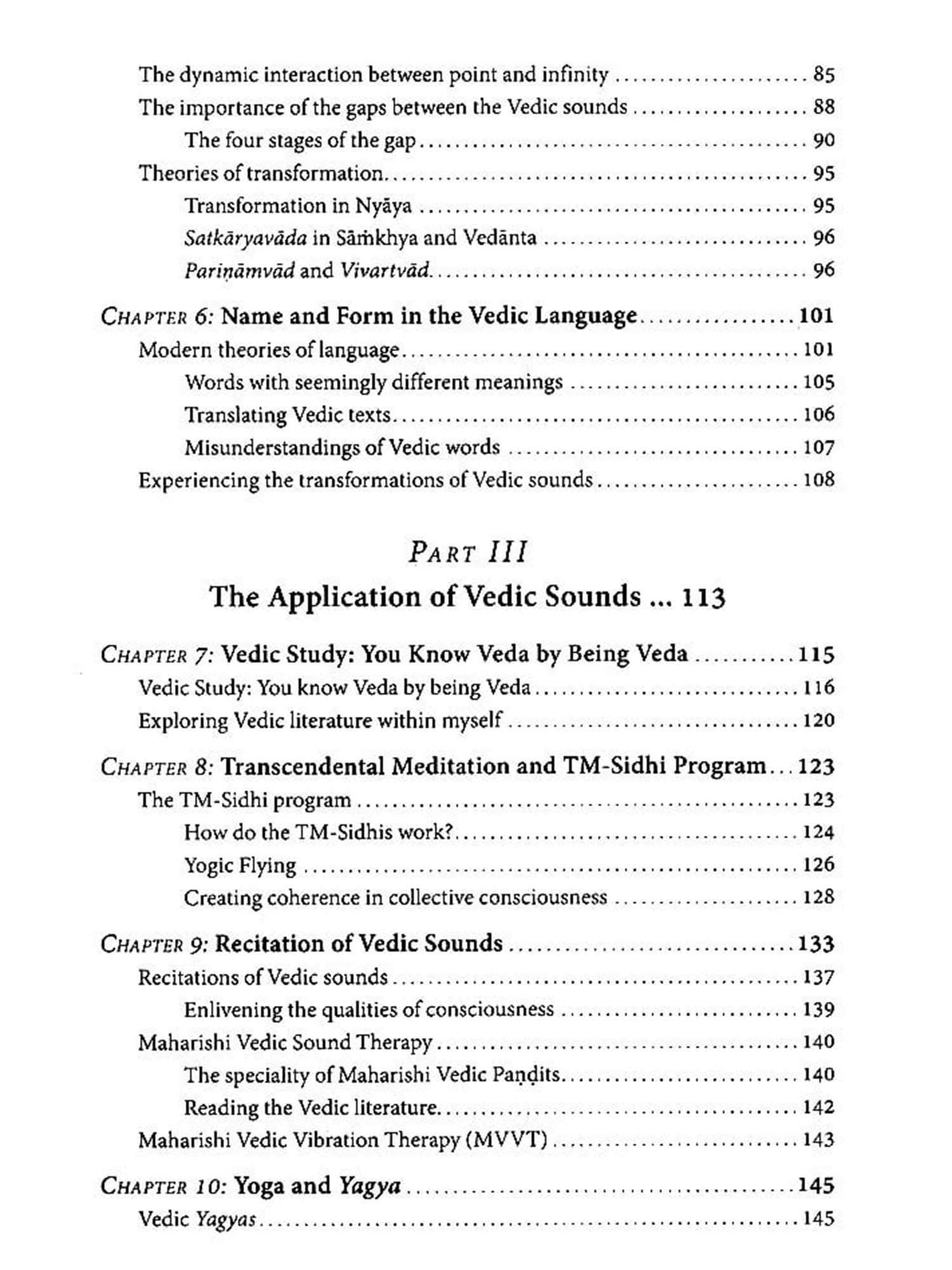 This infinitely dynamic structure is referred to in the Vedic tradition as Veda, meaning pure knowledge. It represents the fundamental vibration that manifests as the universe. This book provides a comprehensive discussion on the dynamics of transformation from the silence of pure consciousness to the sound of Veda, and from sound to sound, culminating in the multitude of Vedic sounds. It includes an in-depth analysis of Maharishi's Apaurusheya Bhashya, the self-referential commentary of the Veda upon itself.