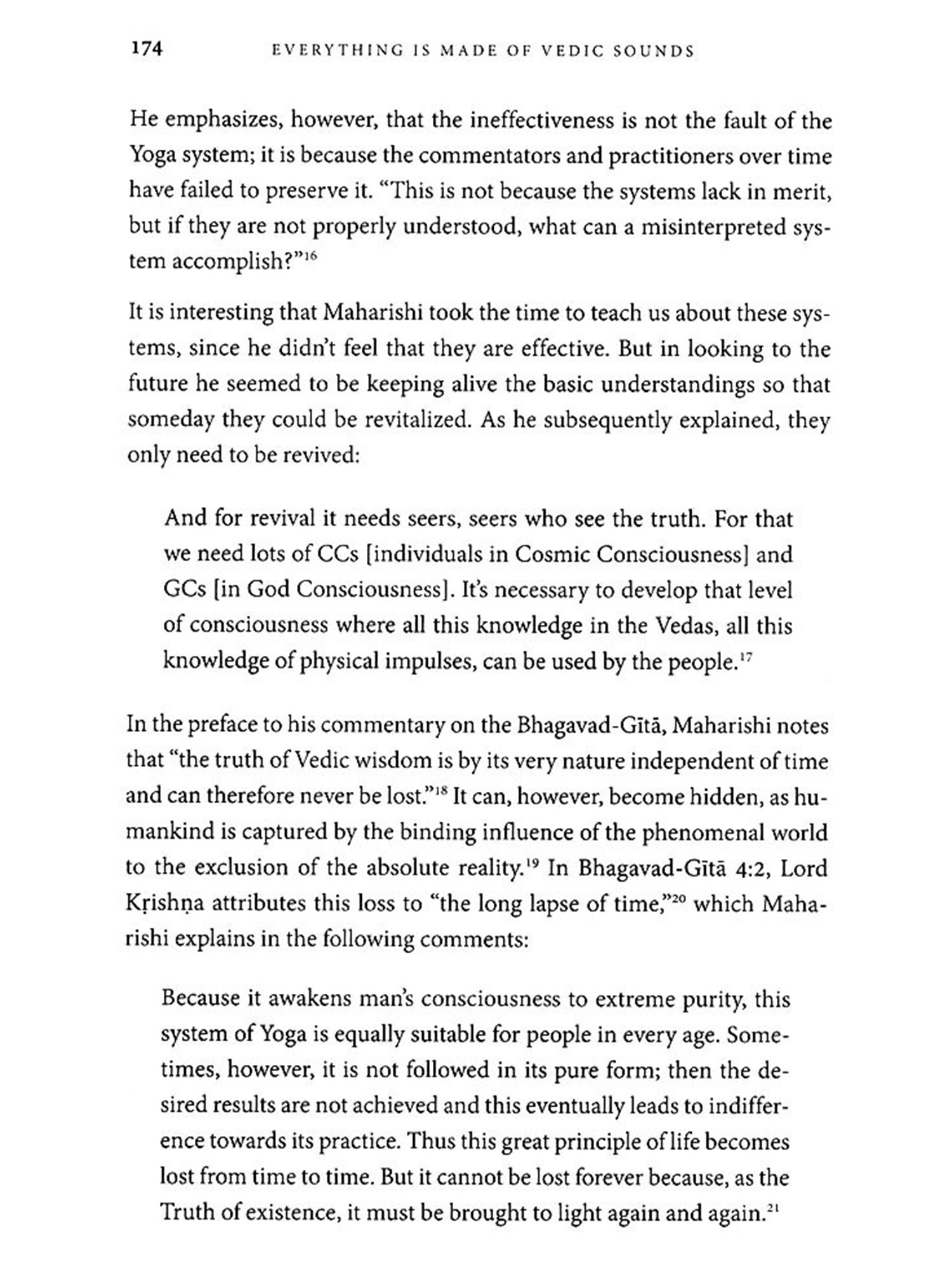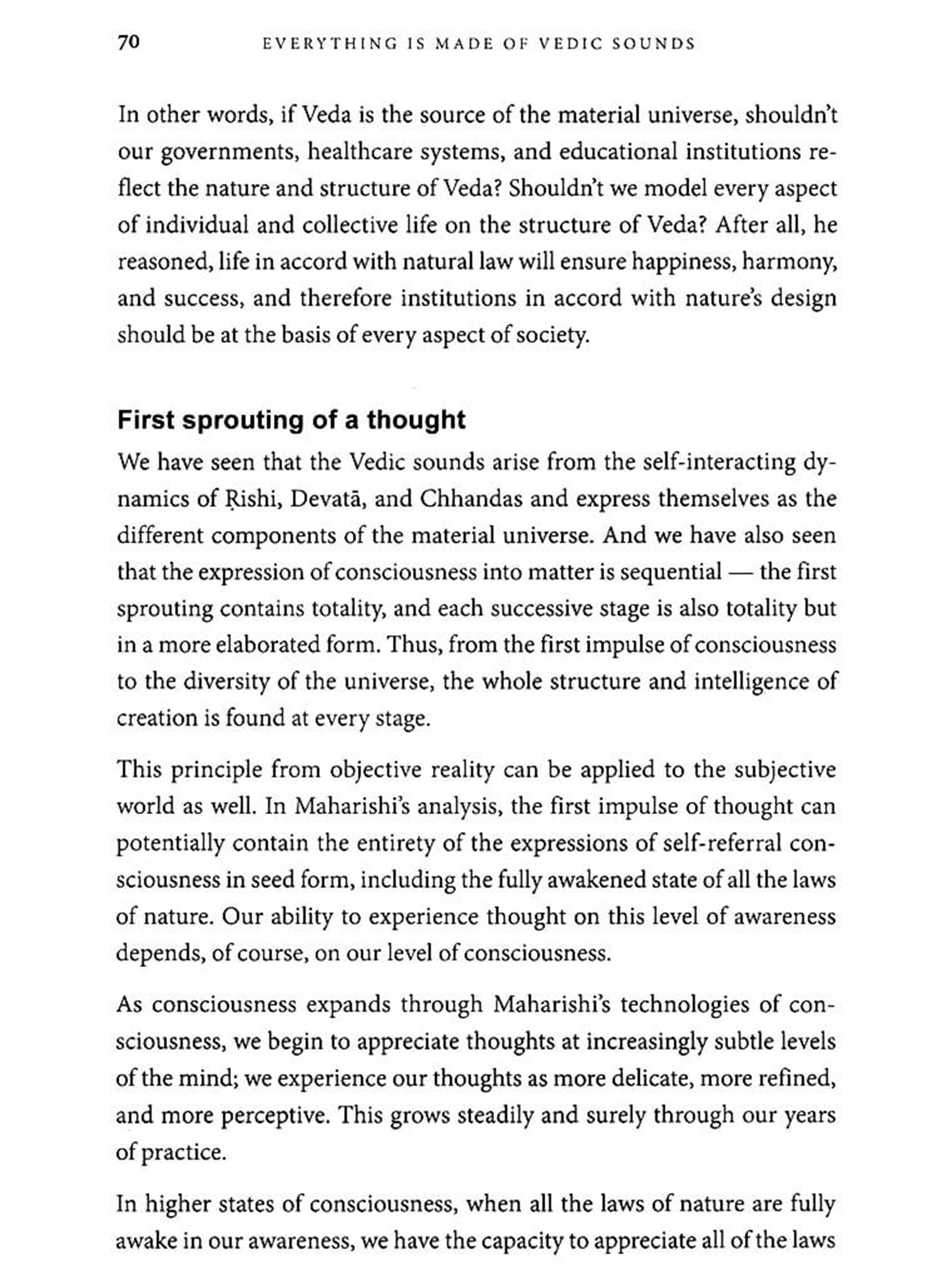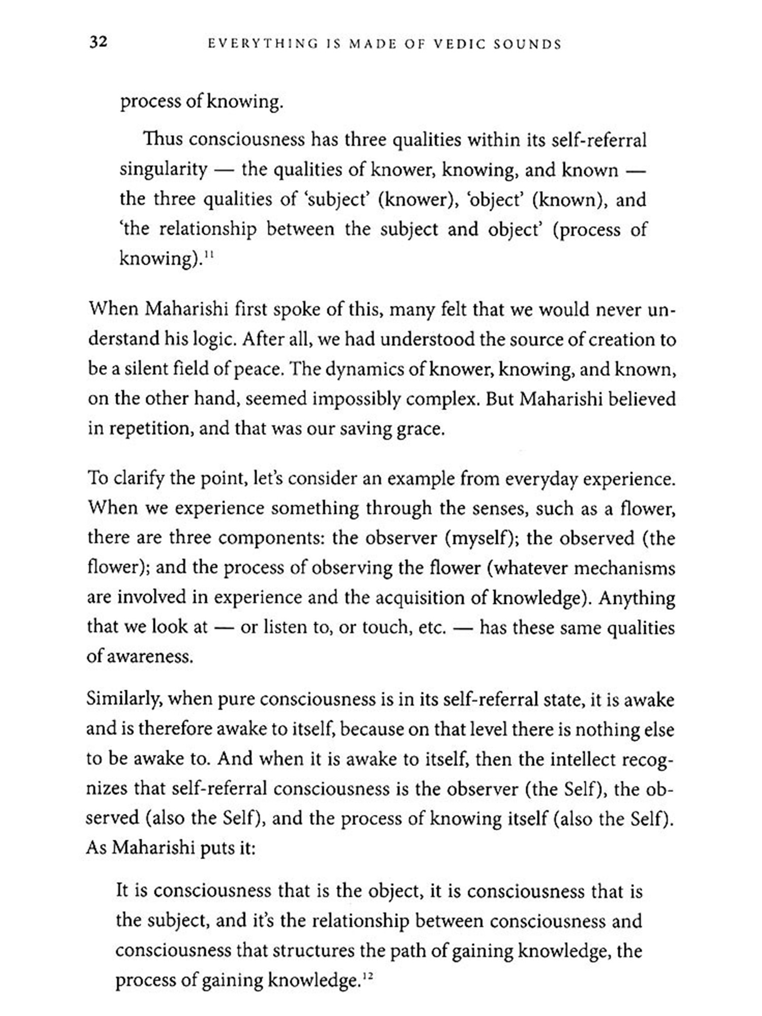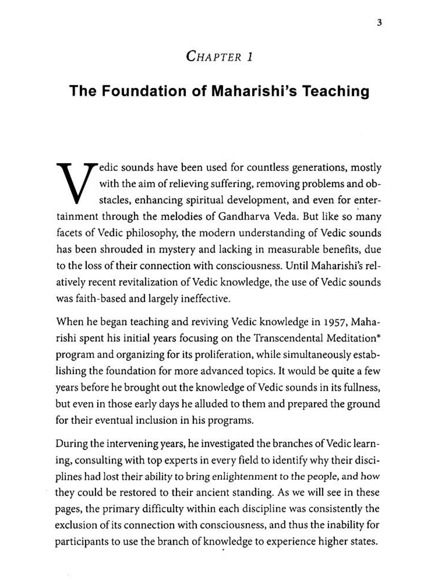 In the following chapters, in the context of our discussions on Vedic sounds, we will see how Maharishi presented these layers, patiently waiting before revealing aspects of knowledge that seemed too advanced. This is the case with the knowledge of Vedic sounds, which he presented briefly in the early days and then developed substantially over the ensuing decades.