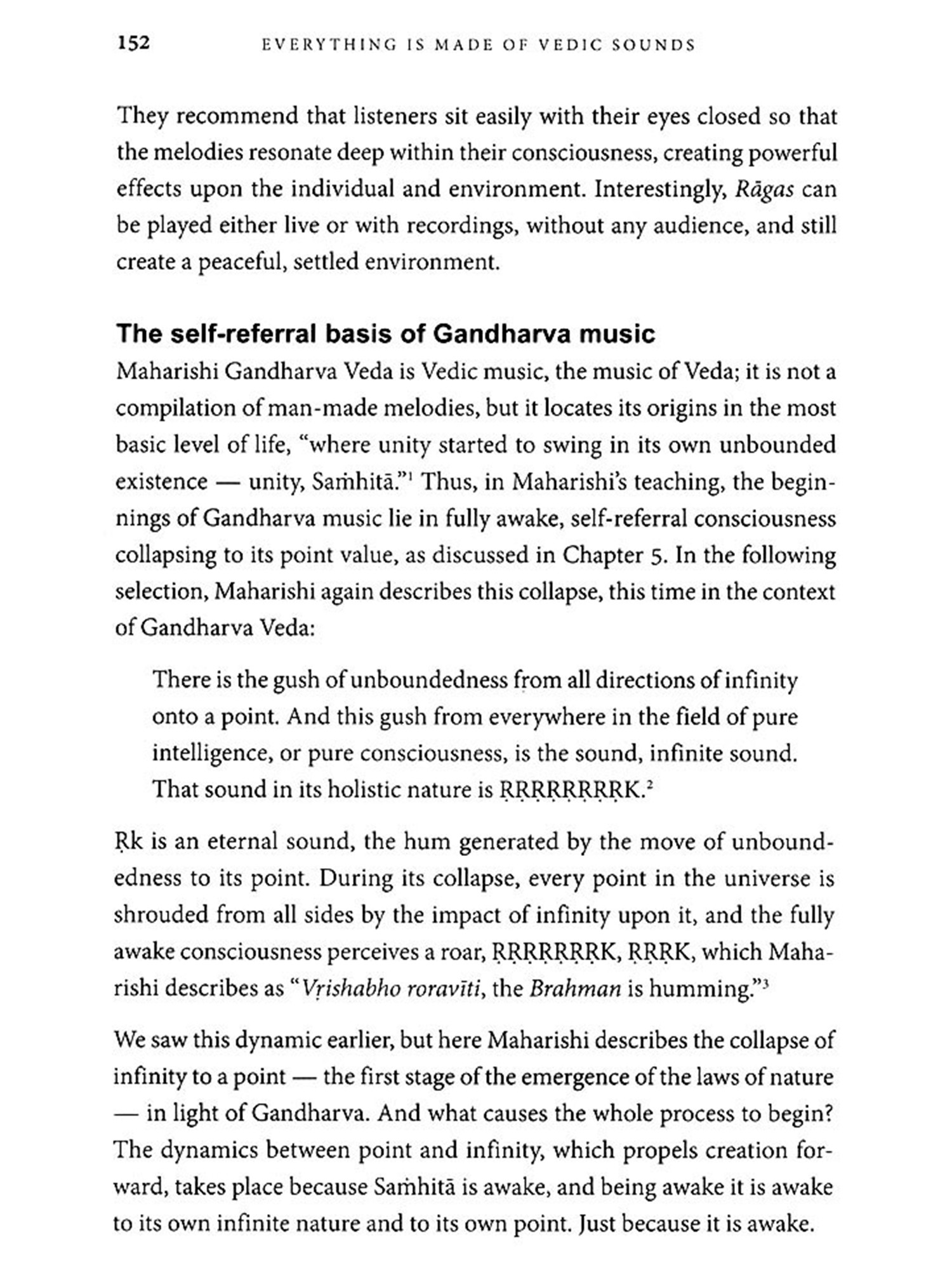 Everything is Made of Vedic Sounds explores how the silent ocean of consciousness, at the most fundamental level of creation, moves within itself, interacting with itself to create an infinitely dynamic structure of pure sound-Vedic sound that eternally hums within the silent ocean of pure consciousness.