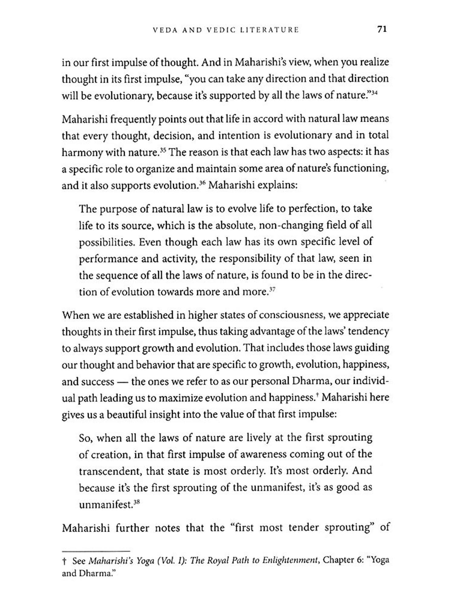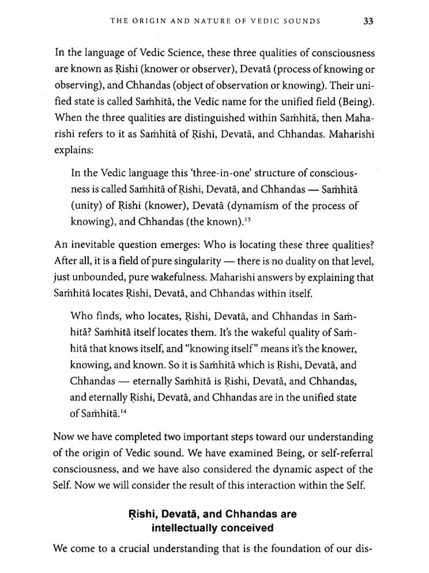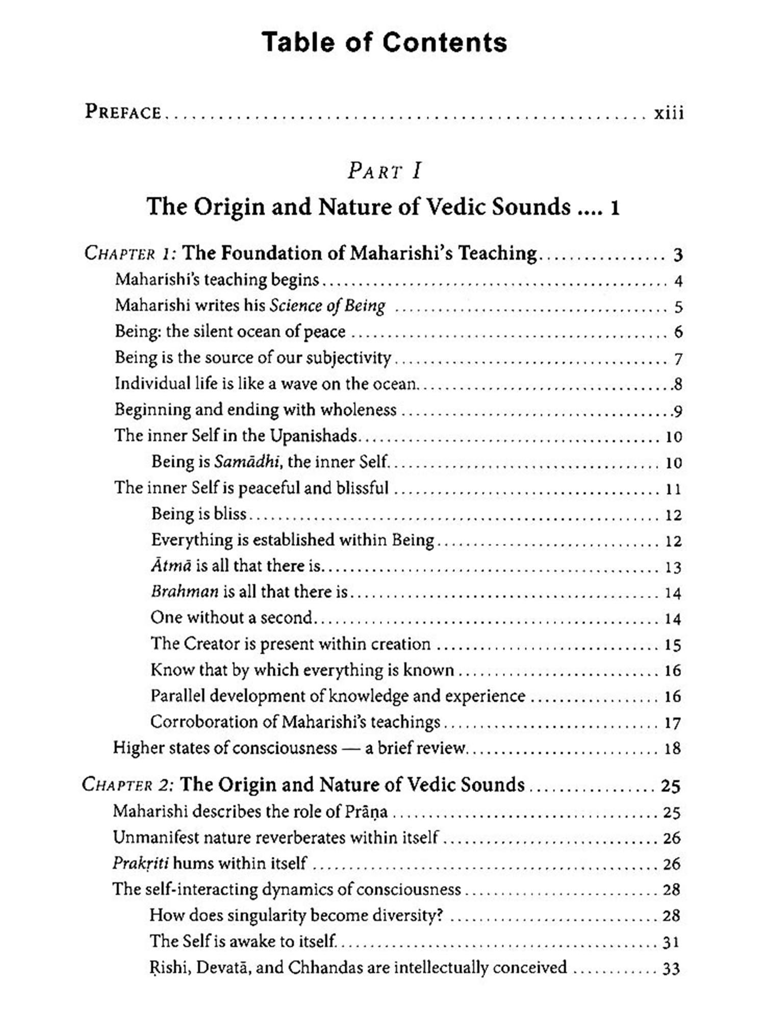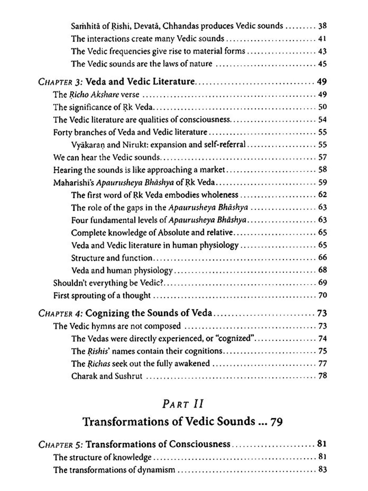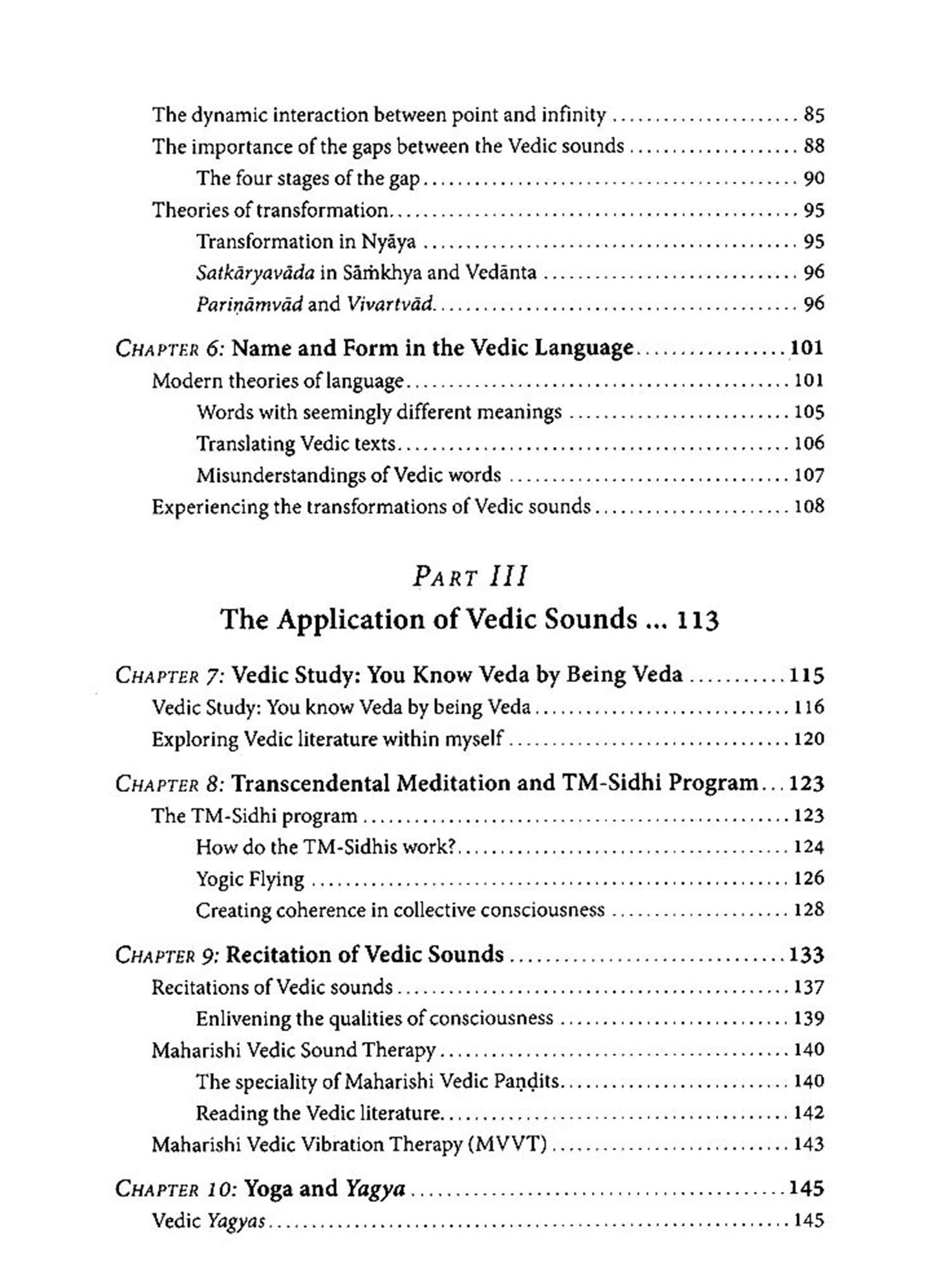This infinitely dynamic structure is referred to in the Vedic tradition as Veda, meaning pure knowledge. It represents the fundamental vibration that manifests as the universe. This book provides a comprehensive discussion on the dynamics of transformation from the silence of pure consciousness to the sound of Veda, and from sound to sound, culminating in the multitude of Vedic sounds. It includes an in-depth analysis of Maharishi's Apaurusheya Bhashya, the self-referential commentary of the Veda upon itself.