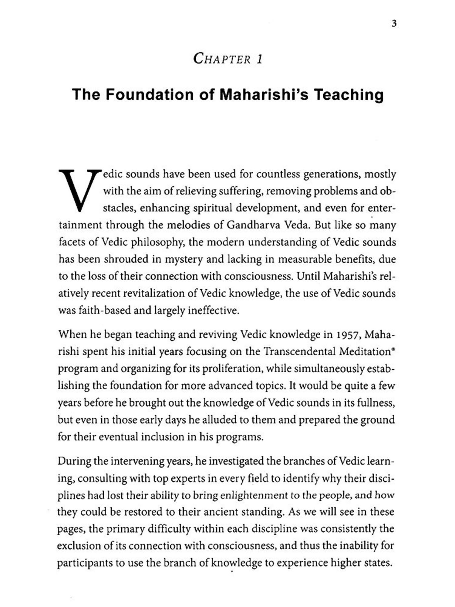 In the following chapters, in the context of our discussions on Vedic sounds, we will see how Maharishi presented these layers, patiently waiting before revealing aspects of knowledge that seemed too advanced. This is the case with the knowledge of Vedic sounds, which he presented briefly in the early days and then developed substantially over the ensuing decades.