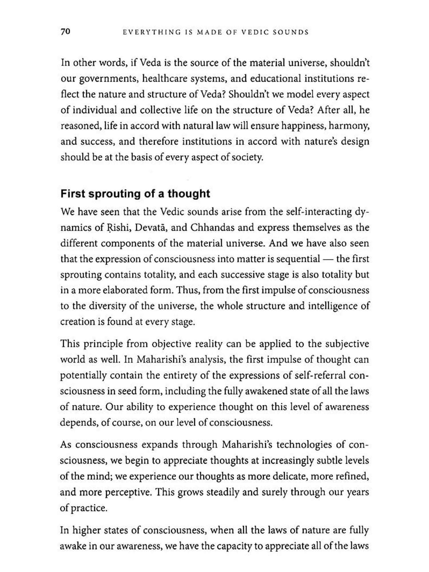 Everything is Made of Vedic Sounds also delves into how Vedic sounds can be applied across various aspects of life to enhance health, expand consciousness, and remove obstacles to human evolution.
