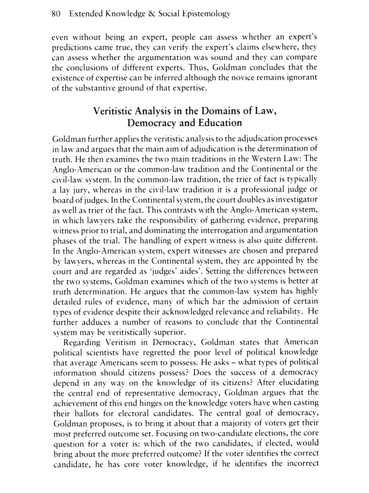 The third chapter is devoted to trace the history, influences and factors responsible for the emergence of social epistemology from two different perspectives - Classical and Anti-Classical. The classical view is discussed at length focusing on the model provided by Alvin 1 Goldman.