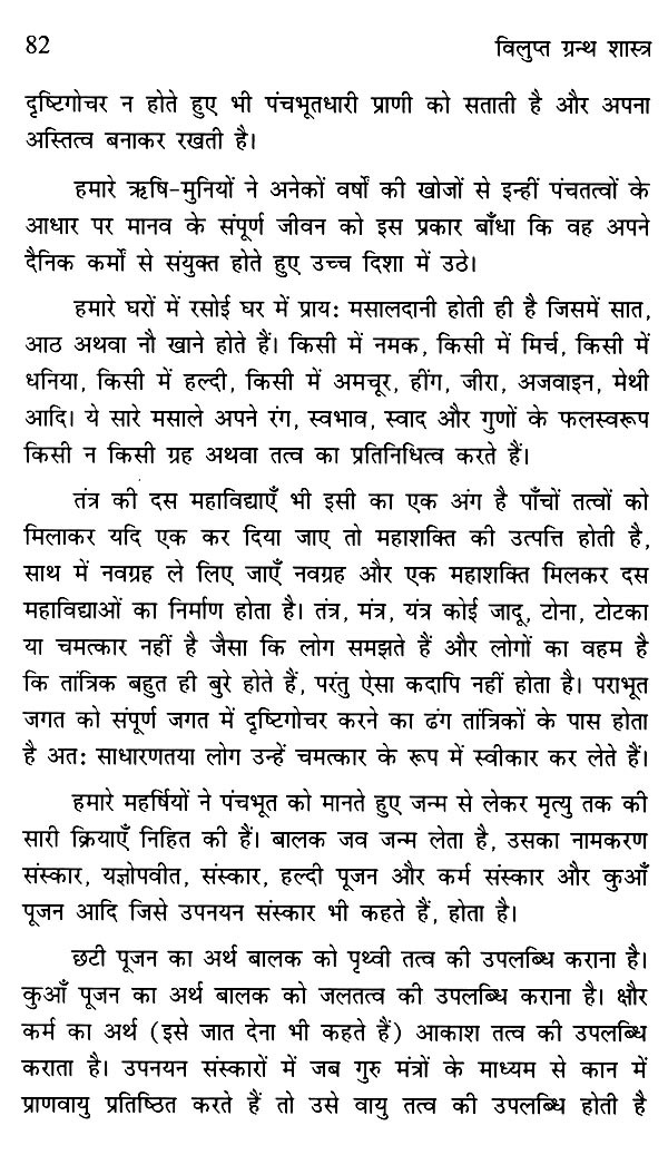 प्रस्तुत पुस्तक उन भारतीय प्राचीन विद्याओं का, शास्त्रों का एवं विधाओं का अनूठा और अनमोल संग्रह है जो जन साधारण के लिए व मानवता के लिए दैहिक, दैविक एवं भौतिक तापों से तो बचाता ही है अपितु शारीरिक, मानसिक एवं आत्मिक शुद्धिकरण के लिए उचित मार्गदर्शन एवं दिशा निर्देश भी प्रदान करता है।