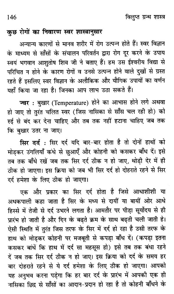 विलुप्त ग्रन्थ शास्त्र अनेकानेक विलुप्त कल्पों का संग्रह है, इसमें संगीत द्वारा रोगों का उपचार, केशो पैथी अर्थात् बालों द्वारा रोगों का उपचार विभिन्न शारीरिक मुद्राओं (Postures) द्वारा रोगों का उपचार दीपदान एवं दीपक प्रज्ज्वलन की विधियों द्वारा देवी-देवताओं की पूजा एवं आराधना और आह्वन की क्रियाएँ भी मानव कल्याण हेतु प्रस्तुत पुस्तक में उपलब्ध हैं।