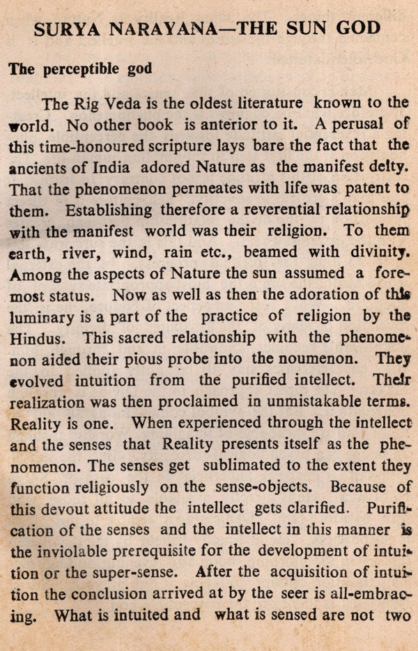 This is a simple Vedic prayer; but it is pregnant with ideas of vital import. Applied philosophy, the universal urge in beings, and the goal of the phenomenal existence-all these are contained in it. The fundamentals are all couched herein. There is not a single life issue that cannot be linked with it. Even the problems and puzzles pertaining to the objective world may with ease be traced back to this ancient but ever new prayer. All-inclusive and all-embracing is this pithy benediction.
