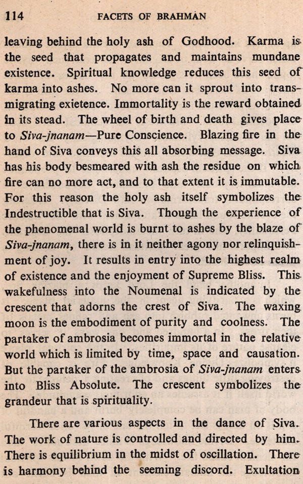 Brahman appears as the phenomenon when it put on the veil of time, space and causation by means its inscrutable power. Traditionally the former called Father and the latter Mother. And she is the stage on which the drama of the life and death creatures is played. Procreation, Protection and destruction are the three-sided function of Mother Nature life is mysteriously brought into being. The wombs provided for it are marvel louse. Affording protection is an equally amazing act of hers. The new born one are so tender, signification and helpless that left to the selves they would all perish. But the mother care, nursing, feeding and funding promote the growth to mature. Finally, the time comes for the destruction of the body its disintegration is a natural as its creation and preservation. Death is the counterpart of life. In the manifest state it is life; in the dormant state it is death to the body and rest to the self.