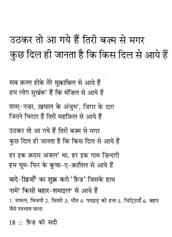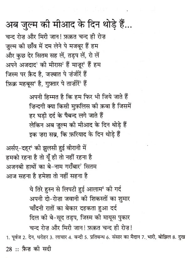 फैज़ की सदी आस उस दर से टूटती ही नहीं जाके देखा न जाके देख लिया। -फैज़ अहमद 'फैज़' फैज़ उर्दू अदब के उन चन्द आधुनिक साहित्यकारों में से एक हैं जिनको विश्व स्तर पर बेपनाह मुहब्बत, शोहरत और इज़्ज़त हासिल हुई। फैज़ की गज़लों और नज़्मों ने ज़बान-ओ-मुल्क की सरहदें तोड़ दीं। 'प्रेम' शब्द में जगमगाते सारे रंग, 'इन्कलाब' के भीतर समायी सारी बेचेनियों और 'इन्सानियत' में मौजूद सभी जीवन-मूल्य फैज़ की शायरी में एक बेमिसाल अर्थ पाते हैं। फैज़ की सदी पुस्तक इन्हीं विशेषताओं पर मानीखेज़ रौशनी डालती है। फैज़ की सदी में फैज़ की कुछ चुनिन्दा और बेहद मक्कूल ग़ज़लें व नज़्में हैं। फैज़ का एक भाषण, उनके द्वारा की गयी गालिब की एक ग़ज़ल की व्याख्या, पत्नी व बच्चों के नाम उनके खुतूत और उनका एकांकी 'प्राइवेट सेक्रेटरी' इस पुस्तक का महत्त्वपूर्ण हिस्सा हैं। फैज़ के रचना-संसार पर विजयमोहन सिंह, परमानन्द श्रीवास्तव और अली अहमद फ़ातमी के आलेख रचना और जीवन के अबूझ रिश्तों की गिरह सुलझाते हैं। मजरूह सुल्तानपुरी ने ठीक ही कहा था कि "फैज़ अहमद फैज़ तरक्कीपसन्दों के 'भीर तकी मीर' थे।" हमारे समय के 'मीर' यानी फैज़ के परस्तारों के लिए एक नायाब तोहफा है यह पुस्तक।