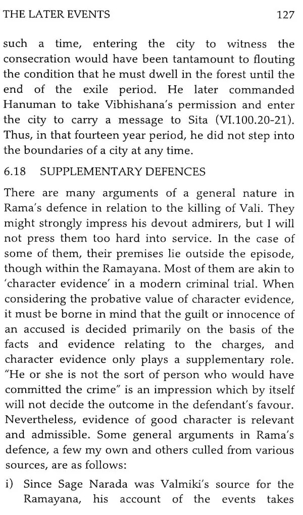 Between the questions of the legal right or wrong and the morality of Rama's action, the commentators whose writings I have read have dealt mainly with the latter and never with the former alone. In this book, I hope to discuss both. An action could be legal and yet regarded as immoral. In the case under question, the main questions before us are whether his conduct was both illegal and immoral or immoral despite being legally correct.