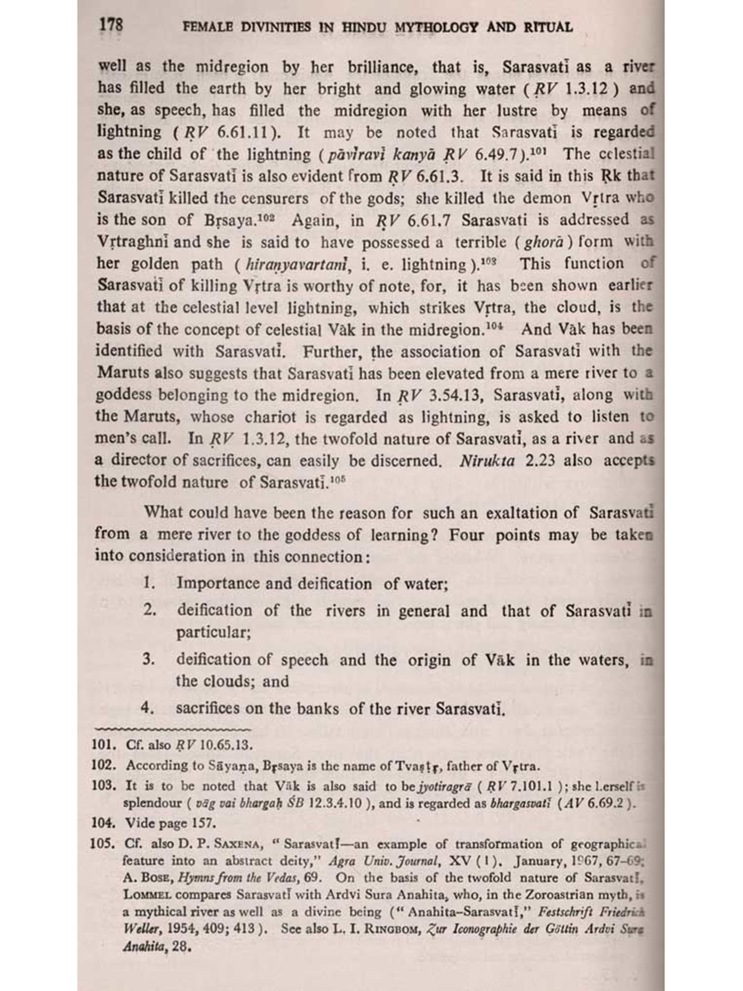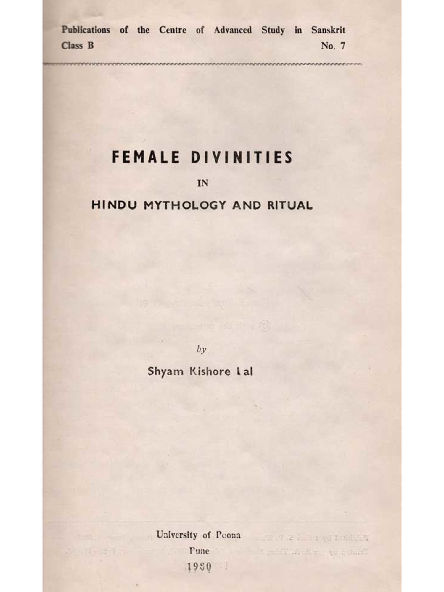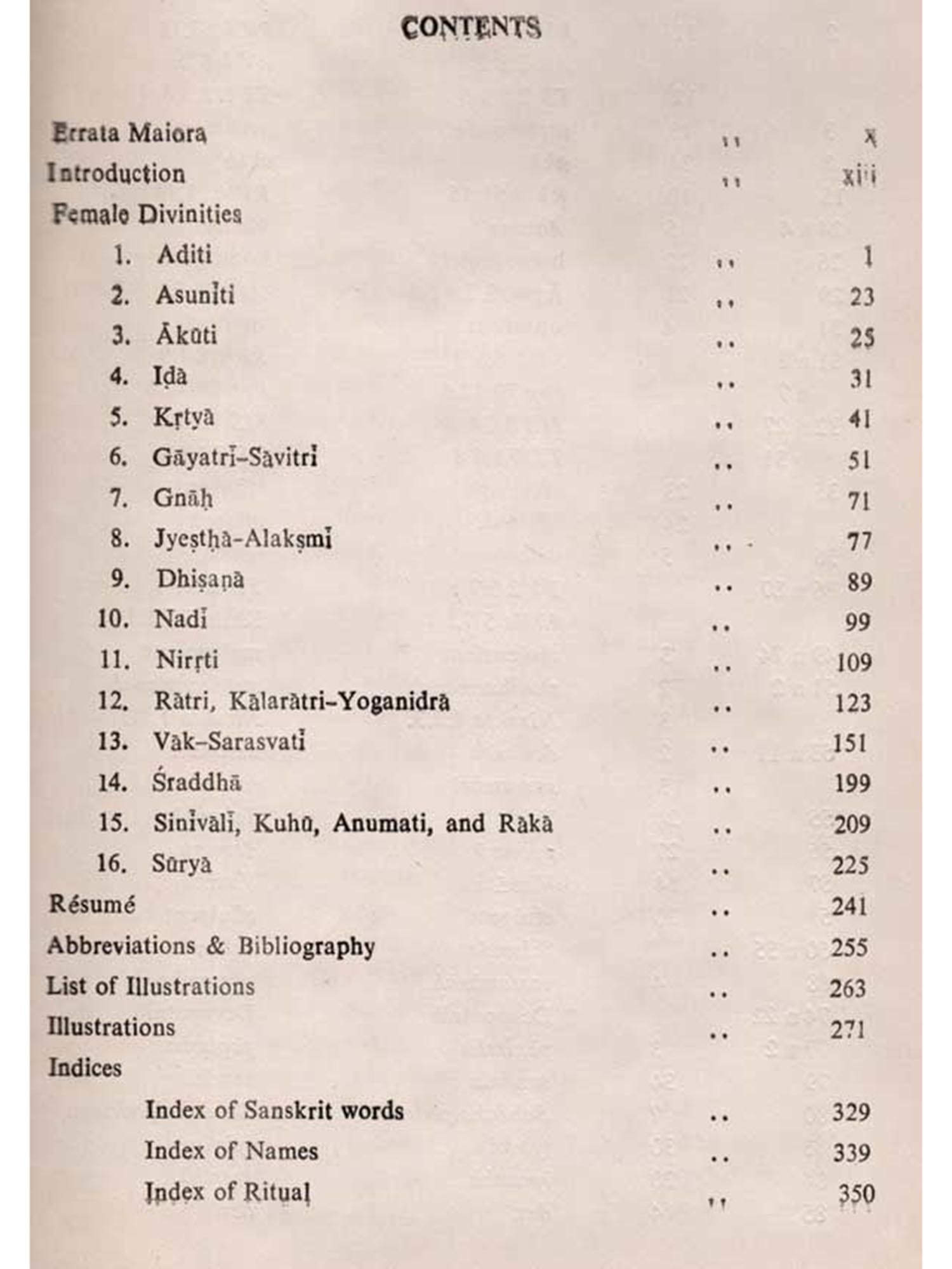 The Vedic mythology is a complex one, and, in spite of several attempts made, the last word is yet to be said. Dr. Lal's choice of the theme is welcome inasmuch as he has delved deeper into many aspects of female divinities. Vedic religion and mythology is undoubtedly male-oriented, but how Vedic people could not abstain, in due course of time, from the impact of the indigenous mother-oriented cults and beliefs of the Sapta sindhu, is a salient point that has been stressed in this book. The study gives a synthetic and comprehensive account of some of the important female divinities as they are found in the Vedic mythology and religion and continued up to the age of the Purapas which may be regarded as the terminus a quo of modern Hinduism. The work is interesting and thought-provoking to scholars as well as to the public.