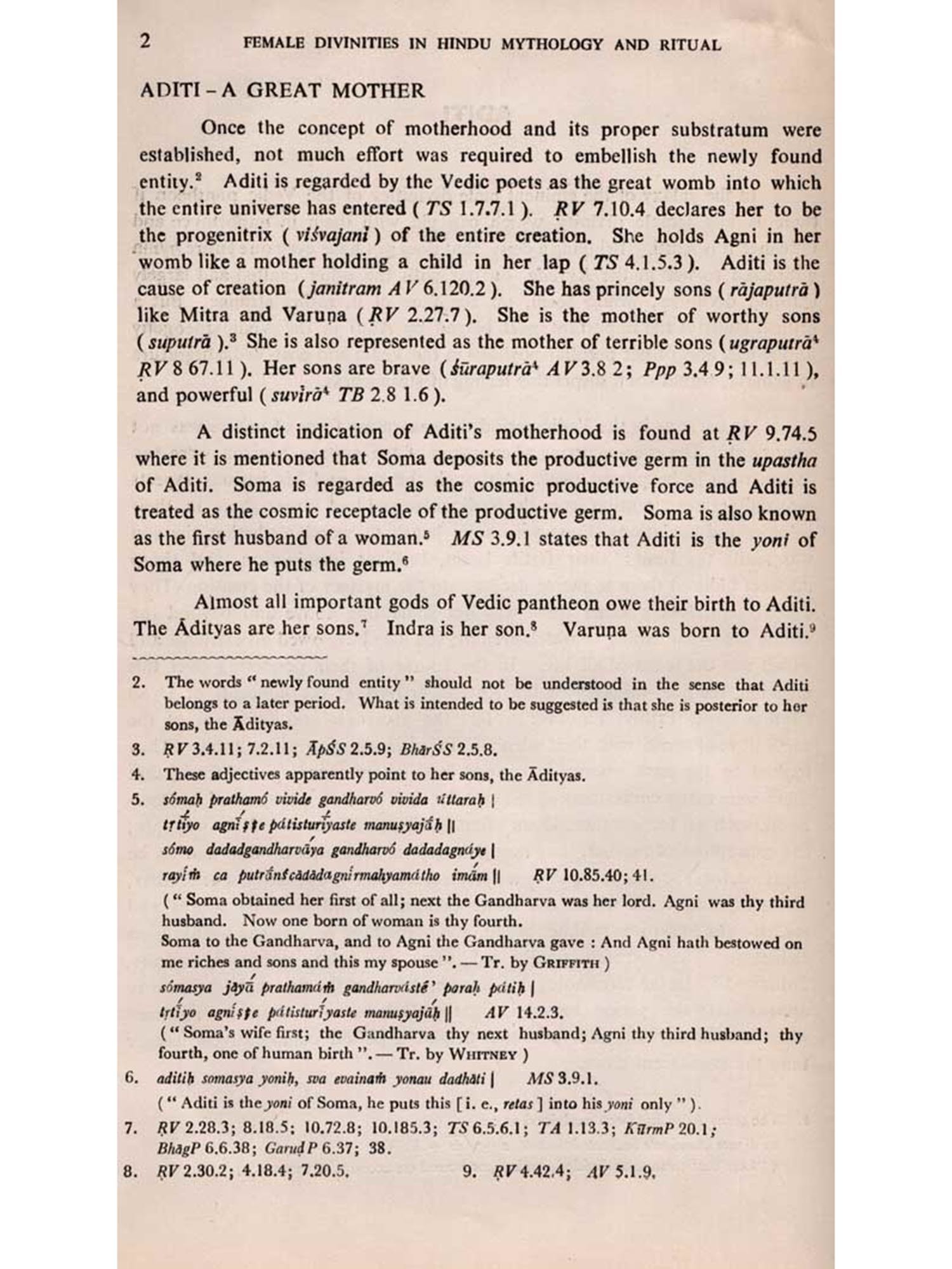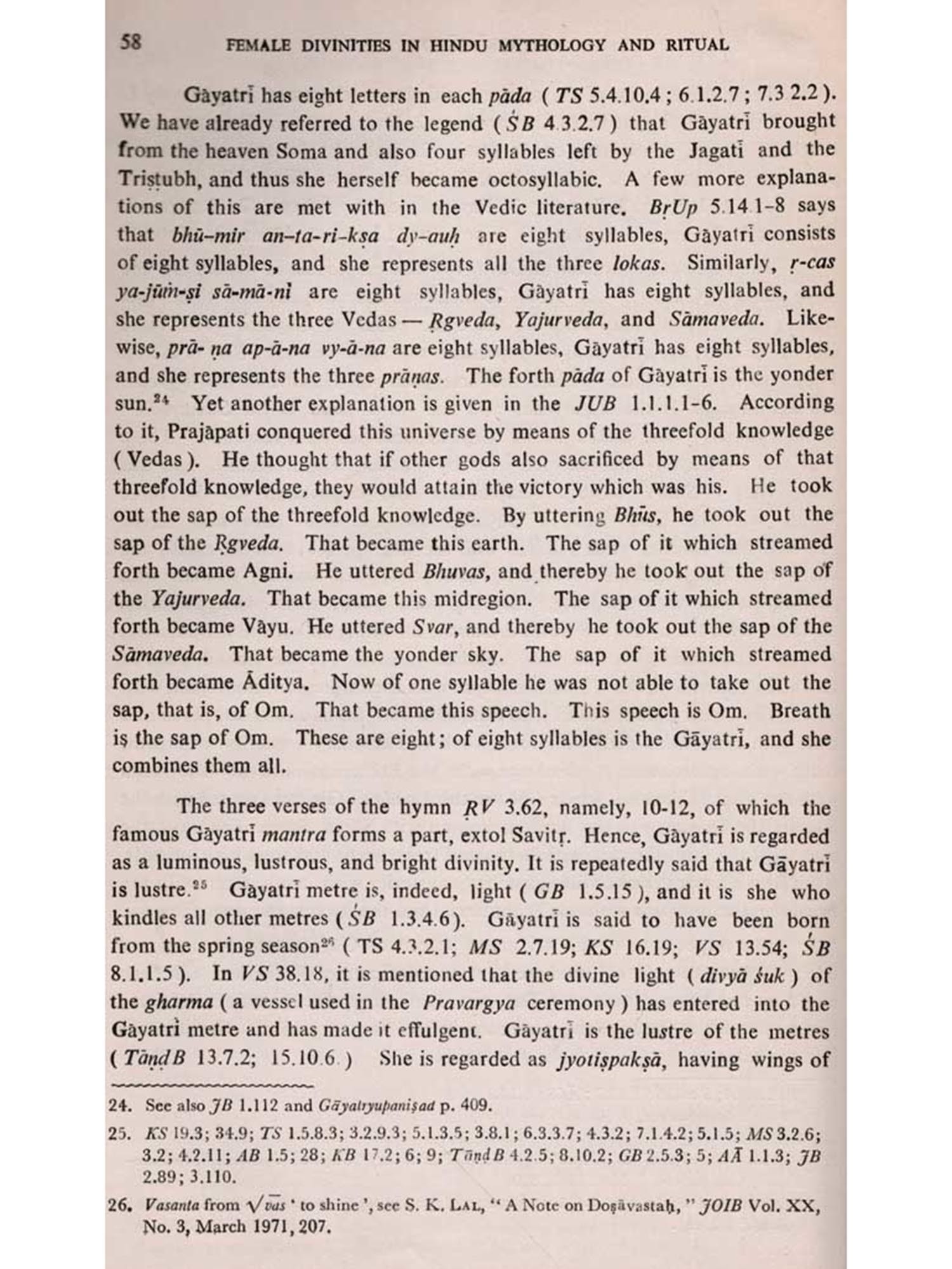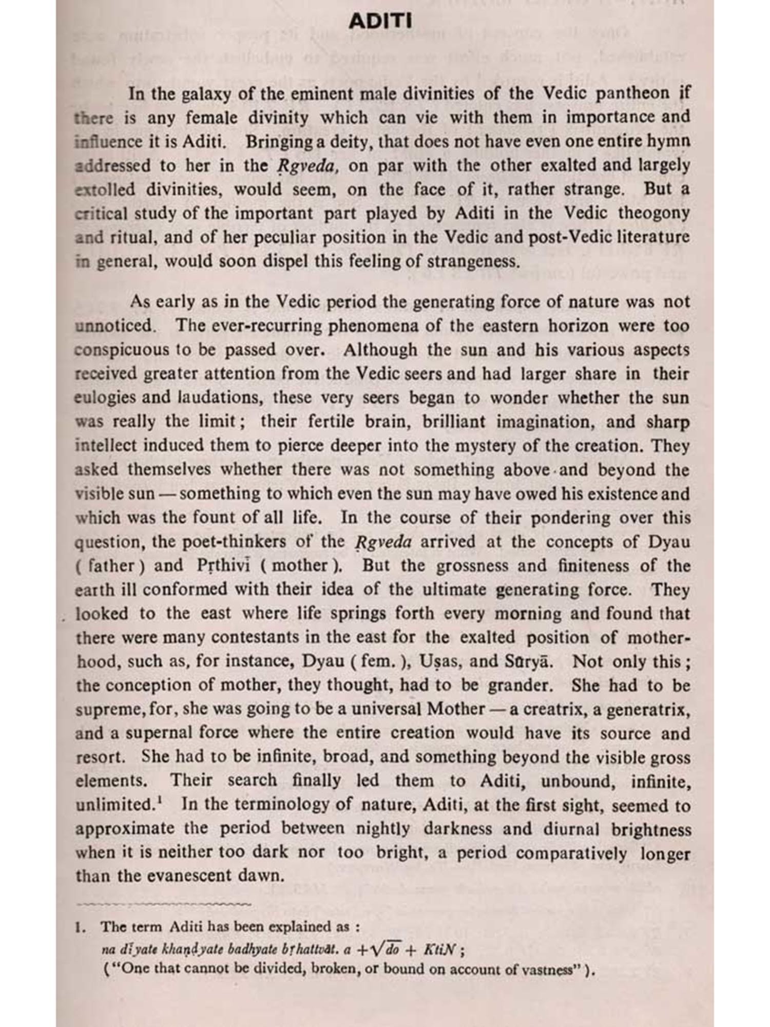 Vedic literature, which belongs to this interregnum, does very often contain certain positive clues that serve as veritable connecting links between pre-Vedic and Puranic ideologies and thought-patterns. A critical and comprehensive study of Vedic literature reveals that female divinities, who were very popular in the non-Aryan indigenous cults and beliefs, have influenced even the Vedic religious thoughts to some extent, though the Vedic authors seem to have betrayed a kind of restraint and half-heartedness in the treatment of those divinities. This fact may be understood as suggesting that most of the female divinities had their origin in the pre-Vedic non-Aryan religious complex, that, therefore, they did not fully fall in line with the Ideology of Vedism, that it was only under the pressure of circumstances that some of them were reluctantly admitted into Vedic pantheon, and that in classical Hinduism they regained their pristine position and importance.