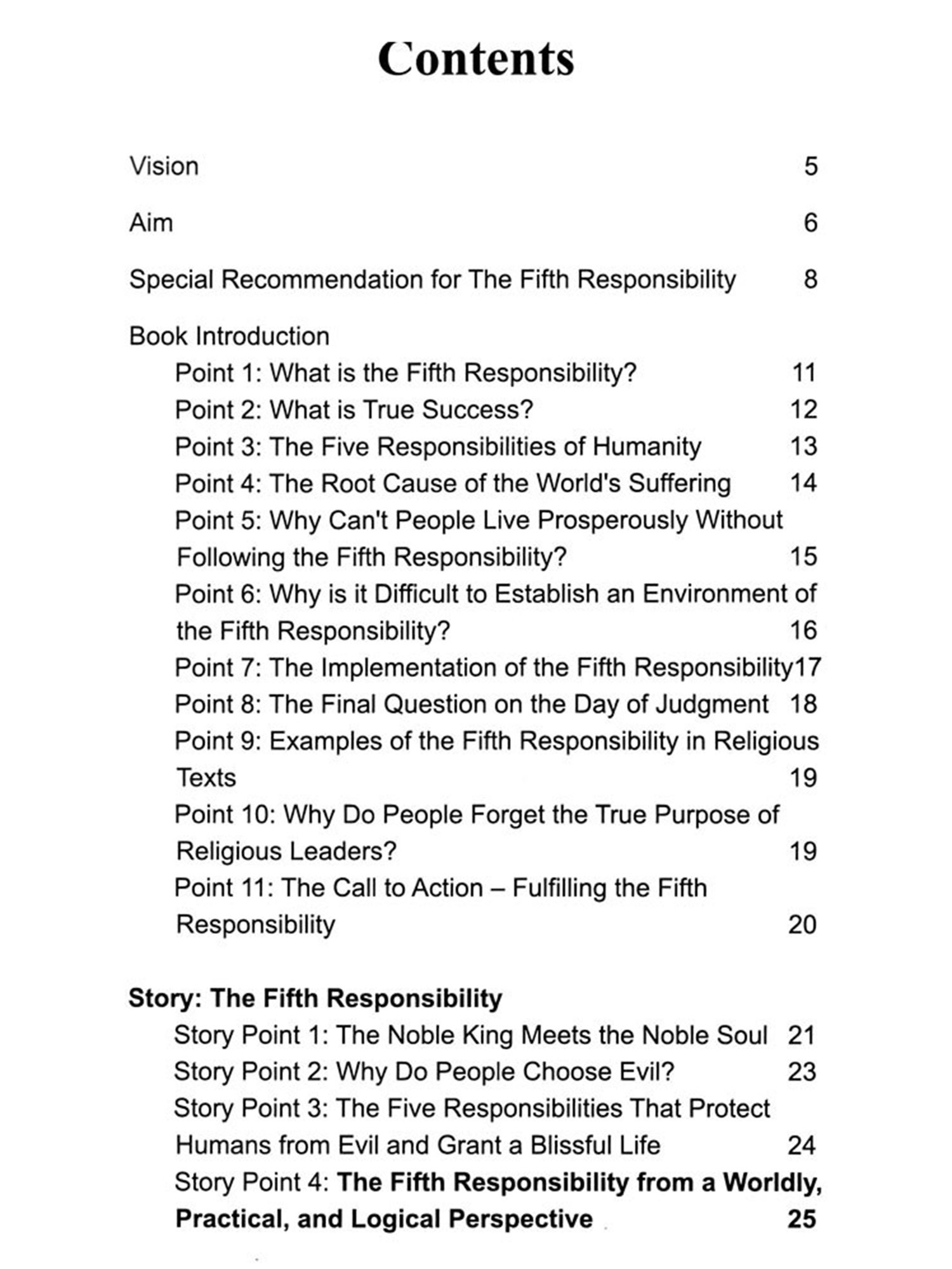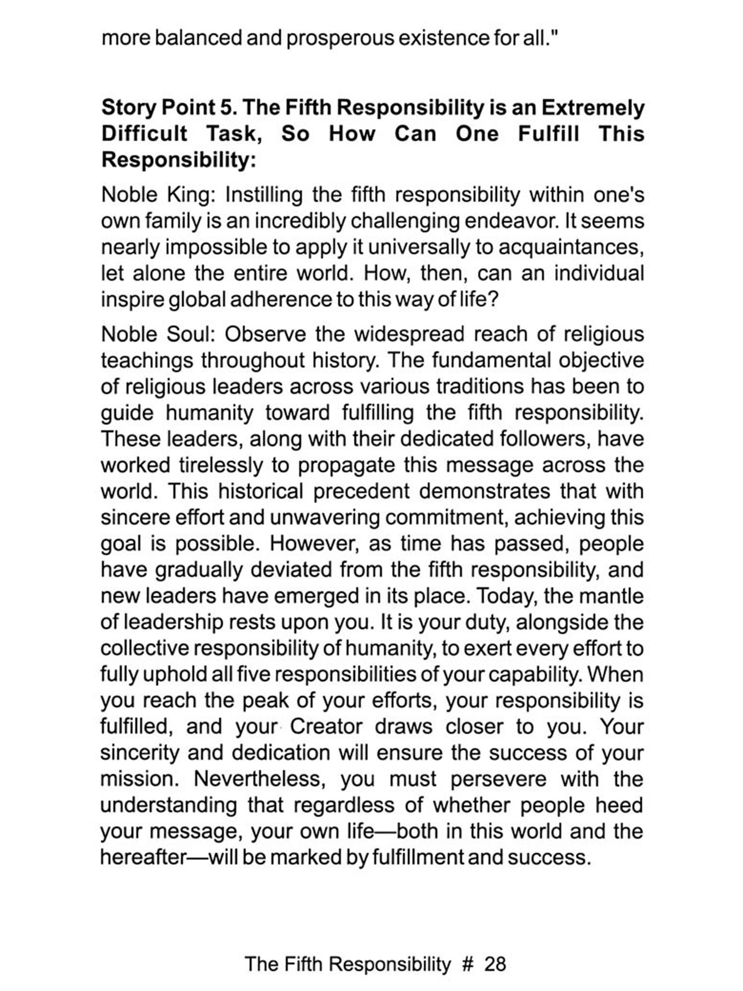 This book presents a compelling argument for shifting from isolated acts of goodness to a systemic approach that guarantees fairness, justice, and prosperity for all human beings in the world. The concept of the Fifth Responsibility-creating an environment where goodness flourishes continuously-challenges religious and moral followers to rethink their role in society.