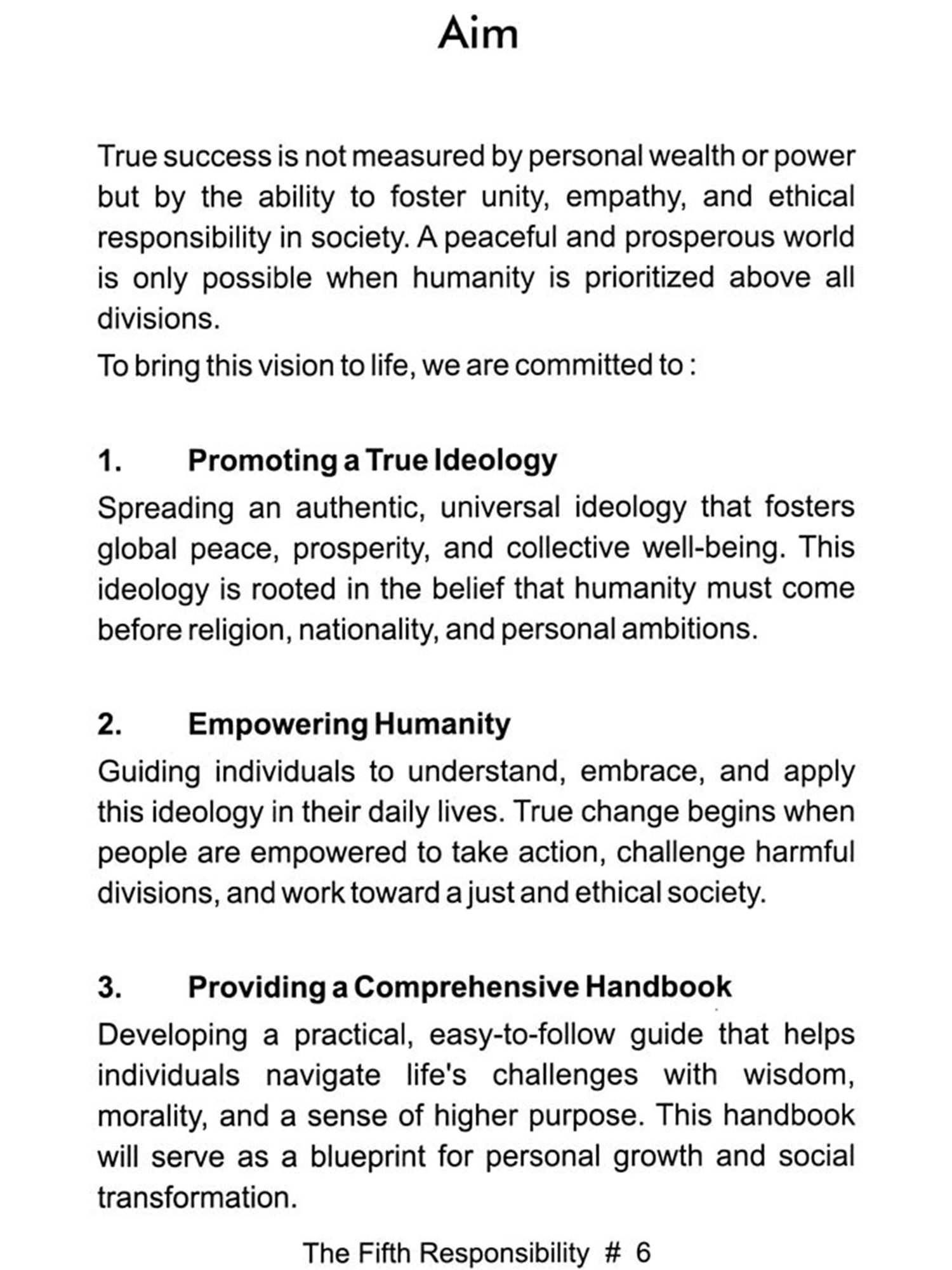 The Fifth Responsibility: A Vision for Global Peace & Prosperity