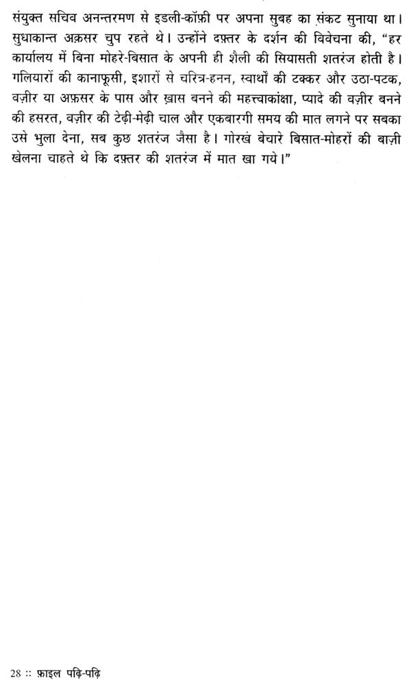 अपने पर हँसना कोई सहज कार्य नहीं है। गोपाल चतुर्वेदी सरकारी तन्त्र के अंग रहे हैं और अपने और अपने तन्त्र पर हँसने का कठिन कार्य उन्होंने फ़ाइल पढ़ि-पढ़ि में बखूबी किया है।