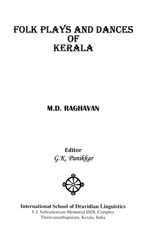 In this book Mr. M.D. Raghavan of the Madras Museum gives us in rapid outline an account of the folk plays and dances of the Malabar Coast. The most interesting part of the book is that which deals with the folk dances. It is, I believe, the first attempt to give a reasonably comprehensive account of the folk dances of Malabar and it prepares the way for a detailed study of them. There is ample scope for other scholars, or perhaps for Mr. Raghavan himself, to select particular parts of this wide subject for detailed examination, supported by technical descriptions of the dance steps and of the music and song that accompany the dance.