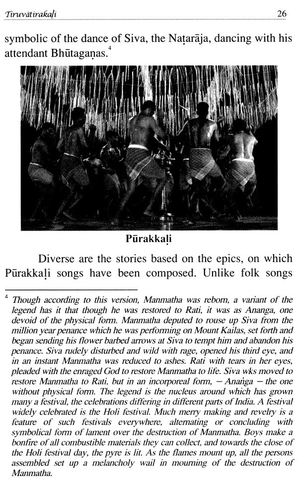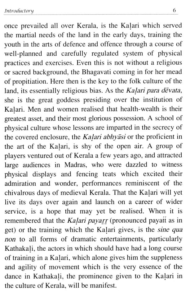 Of recent years a small but enthusiastic group of Malayalis, together with one or two sympathetic 'foreigners', has done much to revive interest in the culture of Malabar and in particular of its dancing. The poet Vallathol has founded the Keralakalamandalam, where he has been training Malayalis in the traditional dances. He has succeeded in attracting the attention not only of the people of Malabar itself, but of those in other parts of India also. Mrs. Stan Harding has filmed the famous Kathakali dance and introduced it to cultured audiences in England. Interest has lately been aroused in the historical ballads of Malabar by the labours of Dr. Chelnat Achyutha Menon of the Madras University and of Mr. Raghavan himself. Apart from these historic ballads, there are many other folk songs, which are closely connected with folk dances, as will appear from numerous references in this book. Mr. Raghavan has the advantage of being a Malayali, of being keenly interested in the folklore of his country and of being a trained ethnologist. This little work opens the way of further detailed study of a fascinating art.