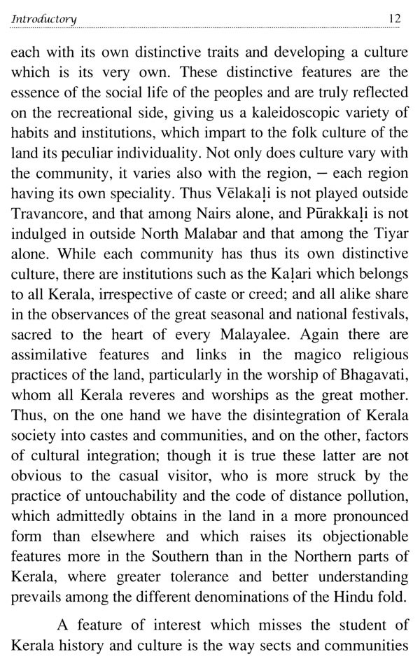 One of the most important problems in the study of Malabar culture is to estimate the relative proportions in which the Dravidian or Aryan elements enter into it. The language itself suggests that the culture, while exhibiting many traces of Aryan influence, is primarily Dravidian. It is true that early European scholars in dealing with the language of Malabar assumed that it was derived from the Sanskrit. But that opinion has long since been abandoned. Malayalam in essential structure is as truly Dravidian as Tamil or Telugu. The problem of cultural origins embraces not only the language, however, but all the arts and sciences. Assuming that the basis of the culture of Kerala is Dravidian, scholars will endeavour to estimate the time at which Aryan influences first came to be felt and what was the state of the Dravidian culture at that time. It is probable that for several centuries a constant struggle was going on between these cultures, with the result that even the religion of the people was in a state of flux and uncertainty. Other influences may also have been at work, arising out of trade relation with Europe and China and of the movements of peoples.
