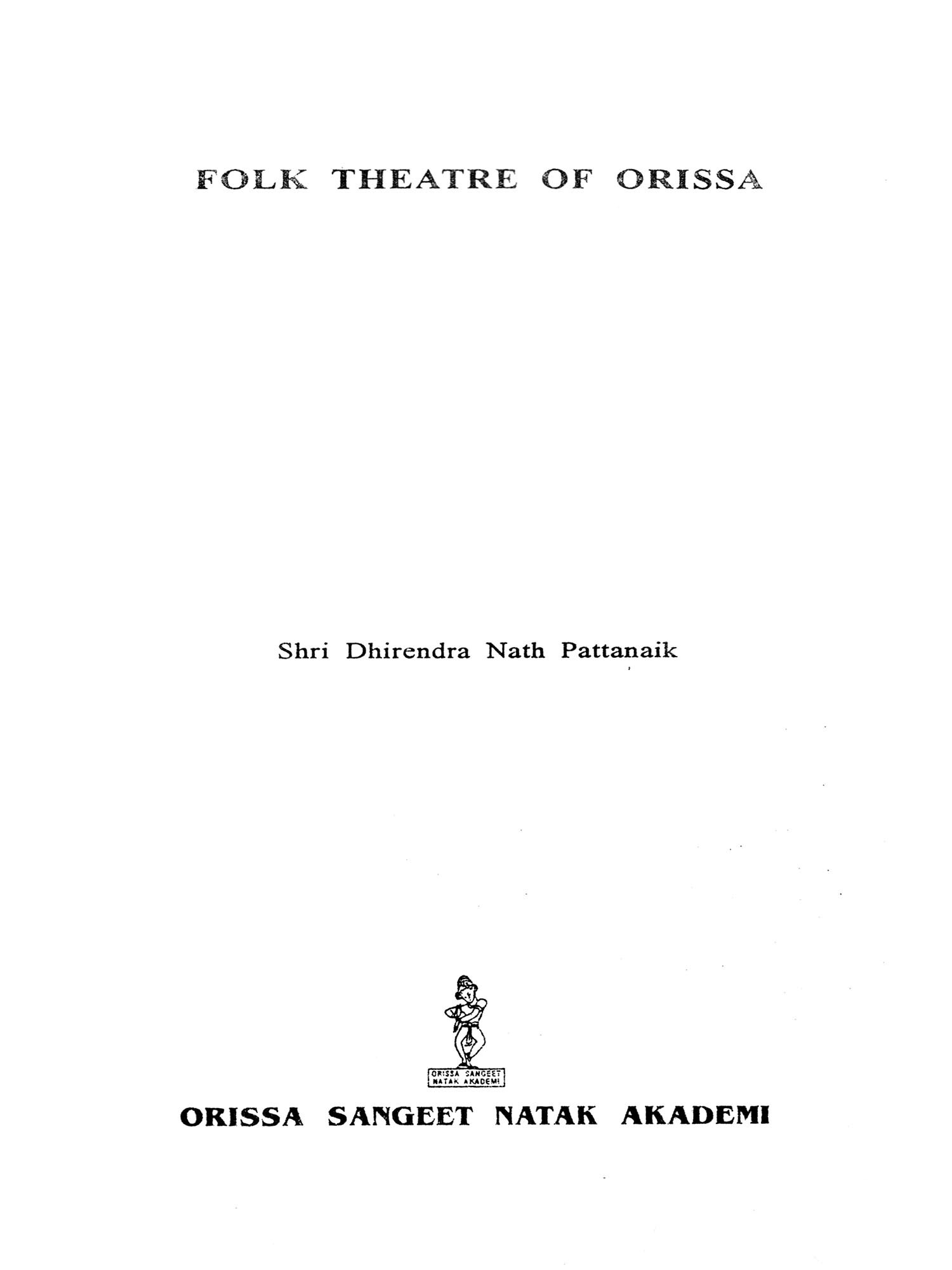 It has been an active work of the Orissa Sangeet Natak Akademi to encourage and support the folk performing groups who have kept alive the traditon. At the same time attempt is being made to record their origin. history, nature of performance etc. through books and book-lets. The present book 'Folk Theatre of Orissa' is such an attempt.