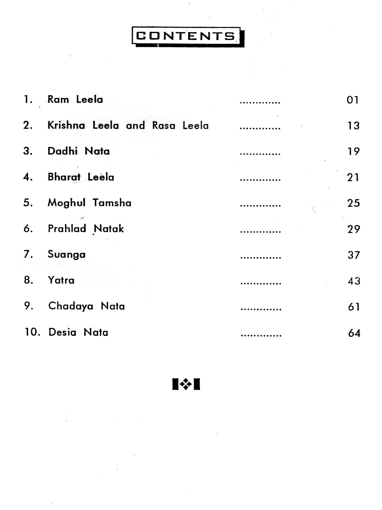 Prior to the advent of Leela, Suanga and Yatra, the most popular folk-plays of Orissa, there existed a number of folk-dances closely associated with the mass religious culture of the people. Some of them are still performed in the rural areas as they are traditionally essential for the ornate religious rituals to complete. All these folk-dances are called Nata (1) in Oriya which means both acting and dancing. In all these dances the dancers are required to sing their dialogues and dance. Therefore, they are called Natua (유), the word that combines the virtues of both an actor and a dancer. Till now, the actor in folk drama excepting the Yatra which is more modern, is required to sing. dance and act.