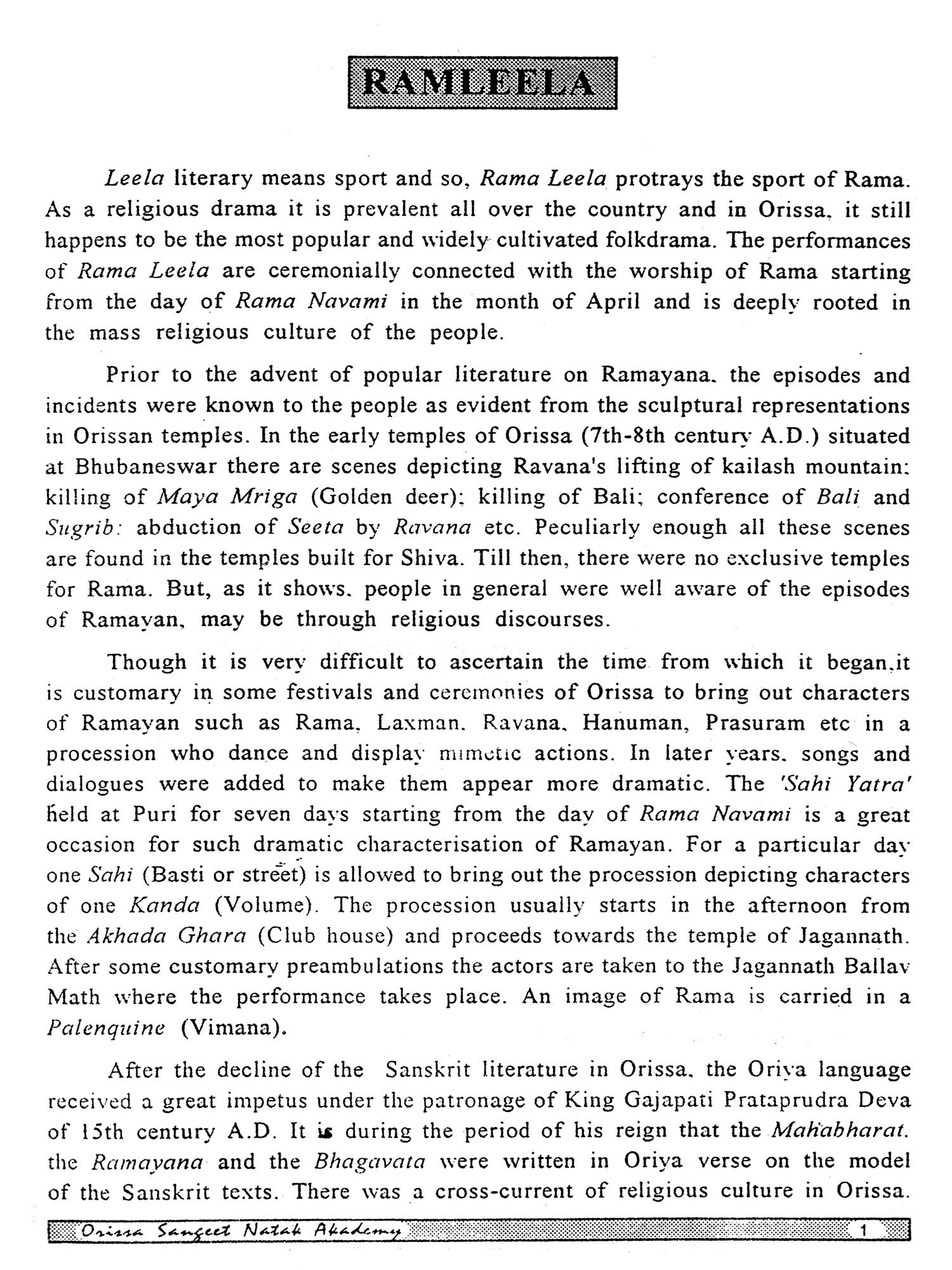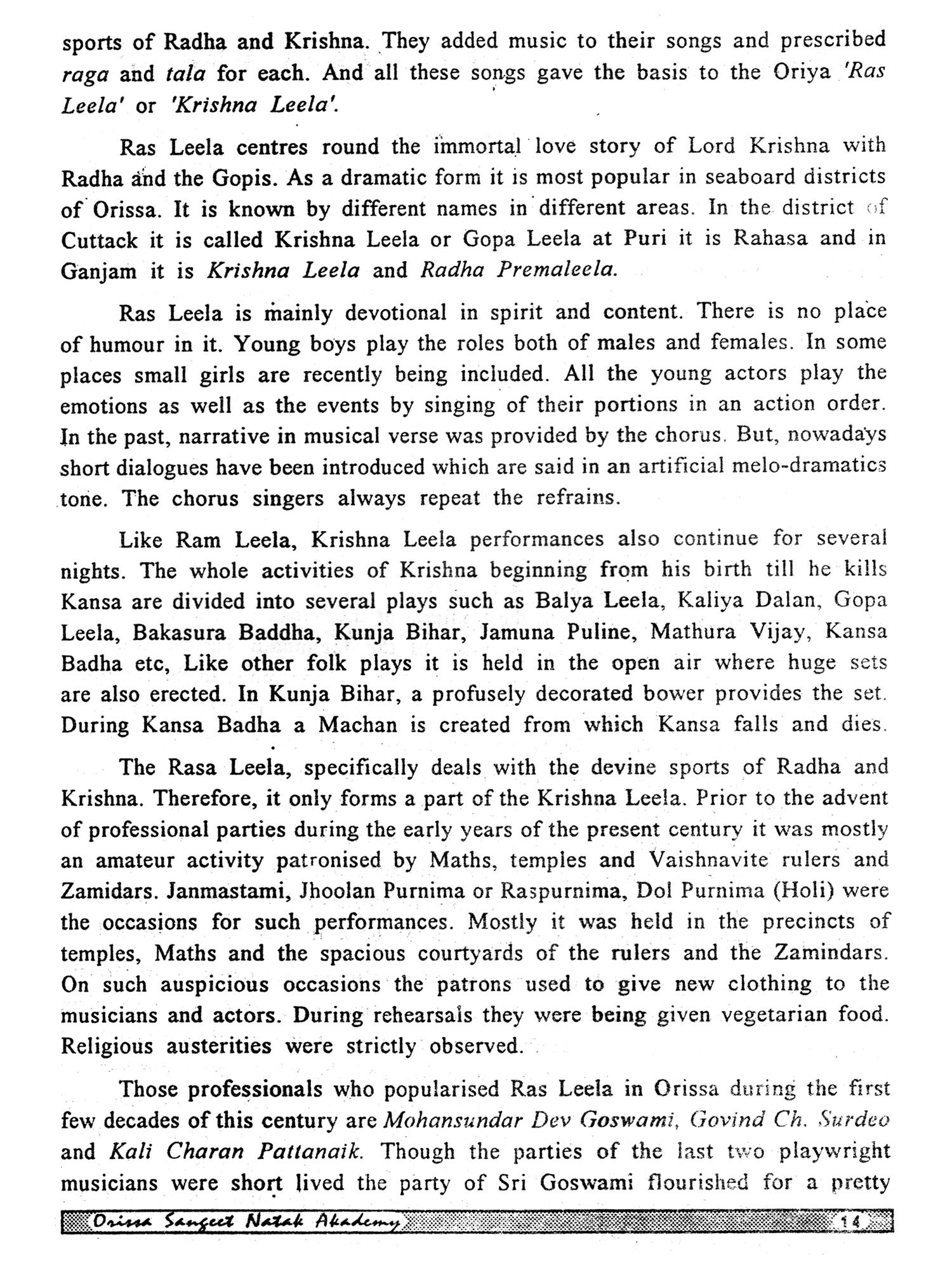 I thank Shri Dhirendra Nath Pattanaik, a well known authorty on the performing arts of Orissa for giving the Akademi an opportunity to publish this book which I believe is the result of long and devoted work.