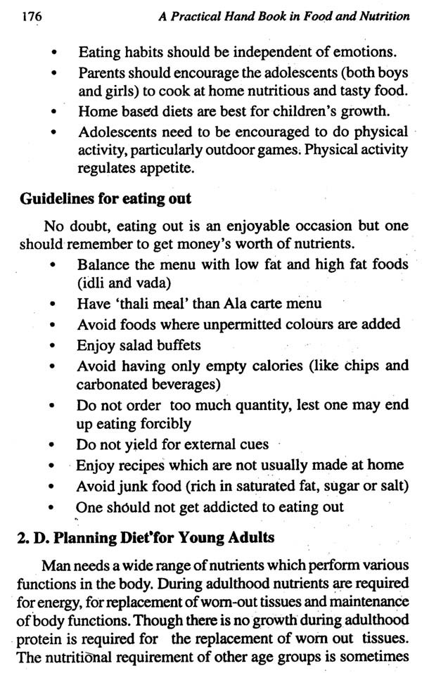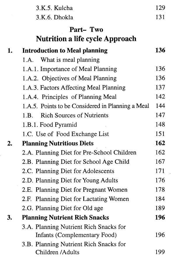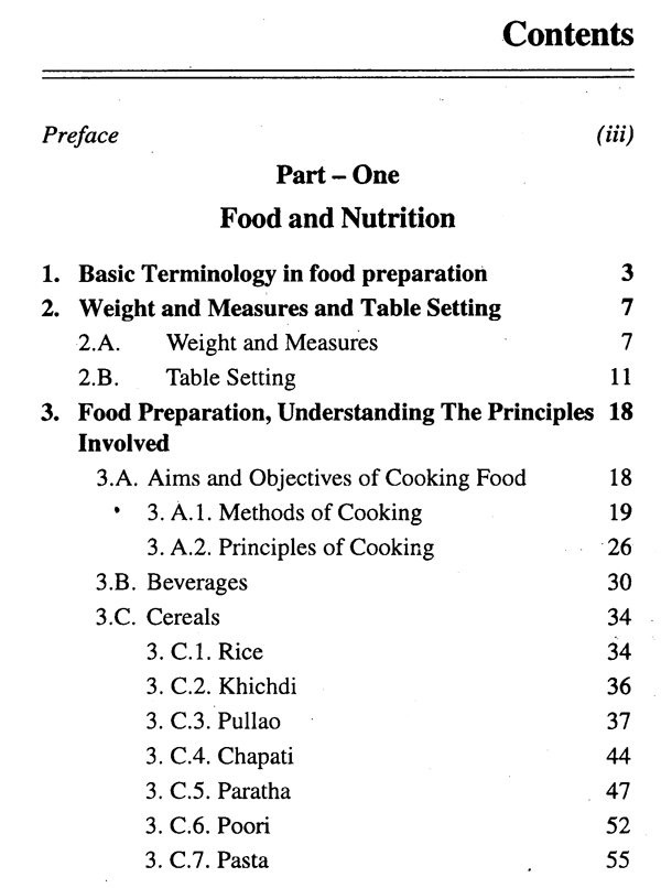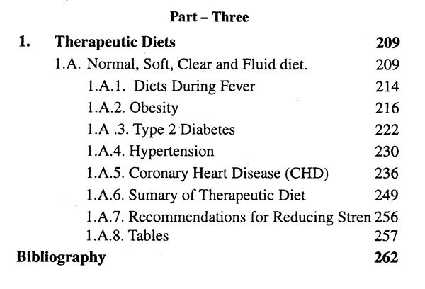 The book has been divided into three parts. Part-One consists of chapters on melfod of cooking, principles of cooking and preparation of various food items. Part-Two deals in balanced diets for different age groups. Part-Three discusses therapeutic diets.