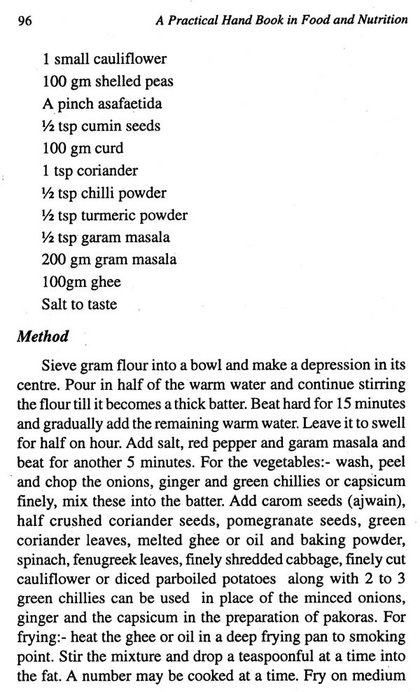 We are happy to place before the Home Science students of the graduate classes. The Practical book in Food and Nutrition. We have endeavoured to follow the Syllabus of different Universities. This book is designed to provide practical help and guidance to Home Science students in particular and B.Sc. Nursing and Food Science students in general. Simple and lucid language is the hall-mark of the book.