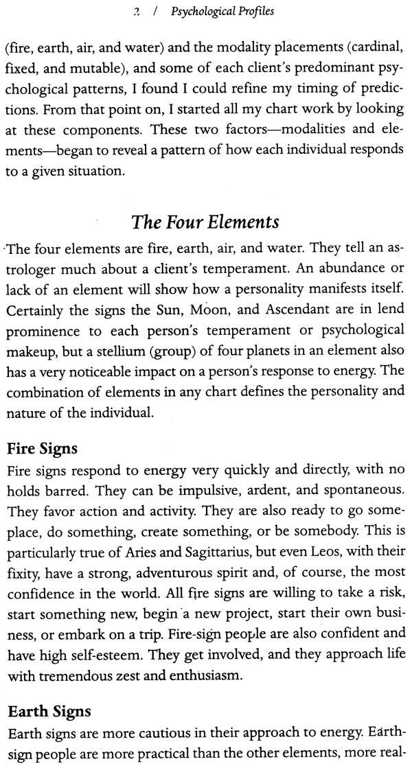 Next, in order to time predictions accurately, astrologers must understand the psychological makeup of their clients, because people respond to energy differently and their profiles will show you the differences. The difference in consulting a predominantly fixed client compared to a cardinal one is enormous.