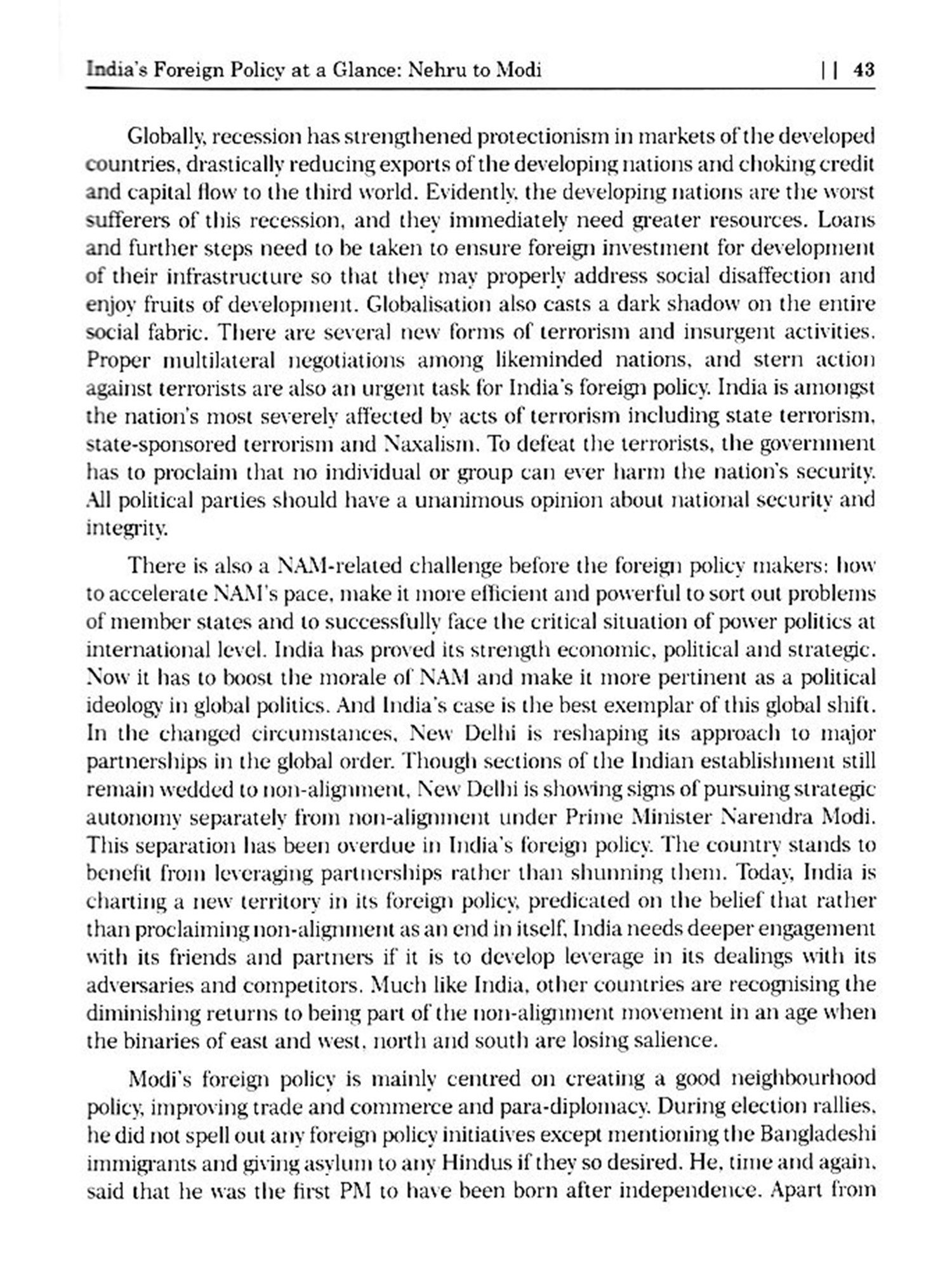 After the election of Prime Minister Narendra Modi in 2014, India's foreign policy underwent significant changes and there are some key developments in all areas with special emphasis on: