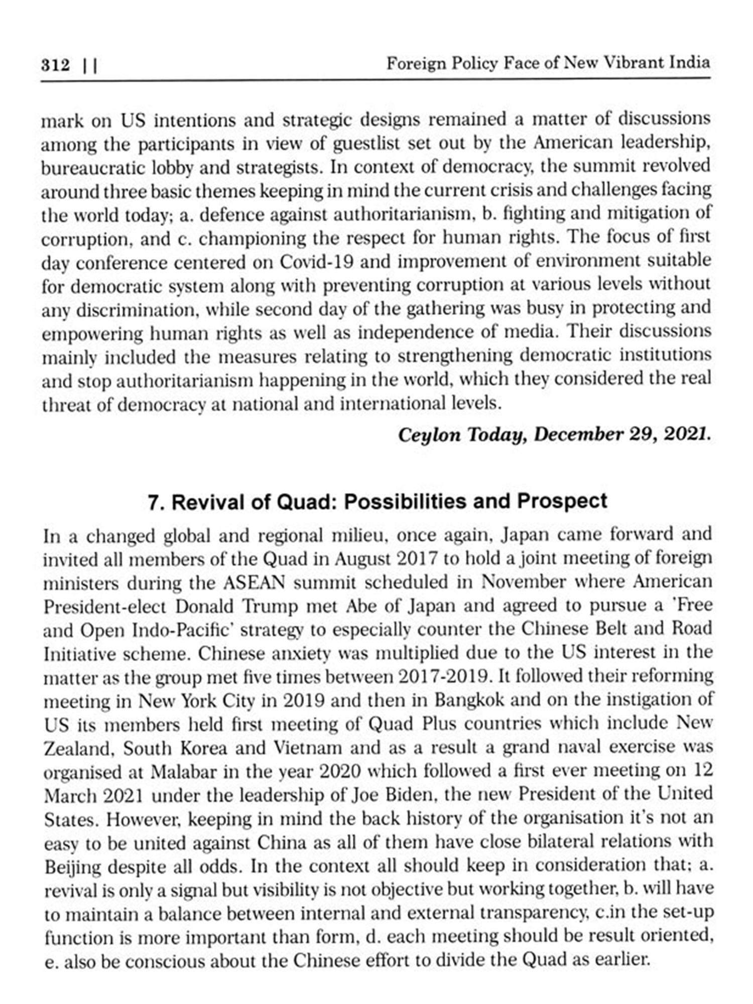 d. Balancing ties with China: India maintained a delicate balance in its relations with China. While it wanted to deepen economic ties with China, it also sought to assert its position on strategic issues such as the South China Sea and the China-Pakistan Economic Corridor.