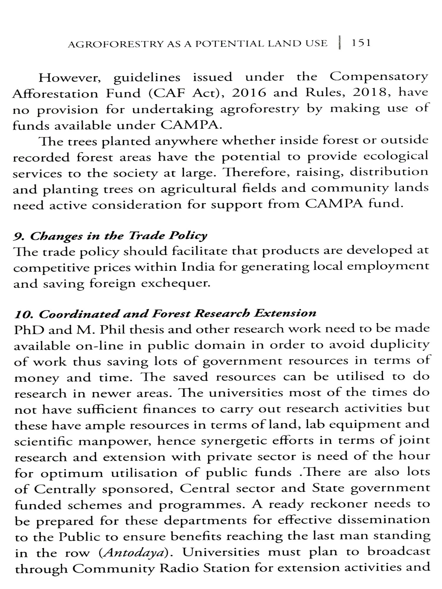 The conservation of Nature is deeply ingrained in the ethos of Indian society at large through scriptures, folk tales, Indian Knowledge System and wisdom, community beliefs and religious rituals. However, the policy of the government sets the tone in any aspect of life and forests and related issues are no exception to this. Nevertheless, policies are dynamic in nature and depict the vision of the government at any particular point of time of that particular sector. But the policies need to be within the boundary of the nation's Constitution. Once a policy is made, the acts, rules, guidelines need to be aligned in such a way as to achieve the objectives of the policy. Additionally, governance mechanism also plays a very important role in achieving the policy goals. Any policy has direct impact on major chunk of population including local communities and women. And it is well established that if any change, which is aspirational, women as a stakeholder group play a very crucial role as part of local governance specially in the field of natural resource management and then only the change is sustainable and long lasting which any policy aims at.