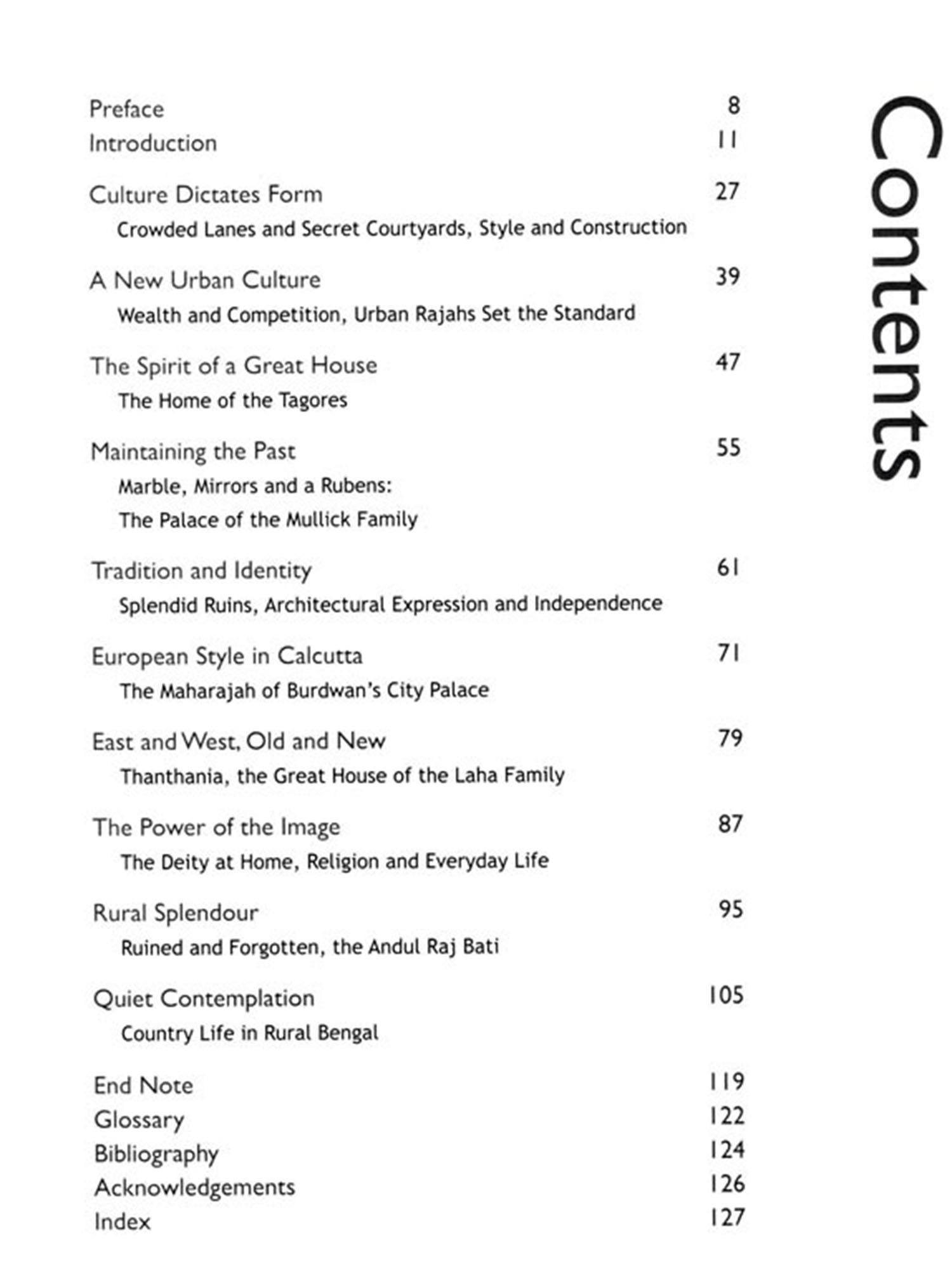 The great houses of Bengal's merchant princes have been largely forgotten and rarely photographed. Many of the interiors have remained the same for over 200 years. While much has been written and photographed on the British colonial architecture and lifestyle, very little has been done on the Indian equivalent. The great families experienced enormous changes in fortune over the centuries, from great wealth and power during colonial times to dramatic economic and social upheaval after Independence. For the remaining occupants, their ancestral homes are bitter-sweet symbols of family pride, impossible to restore, or sometimes even to maintain.