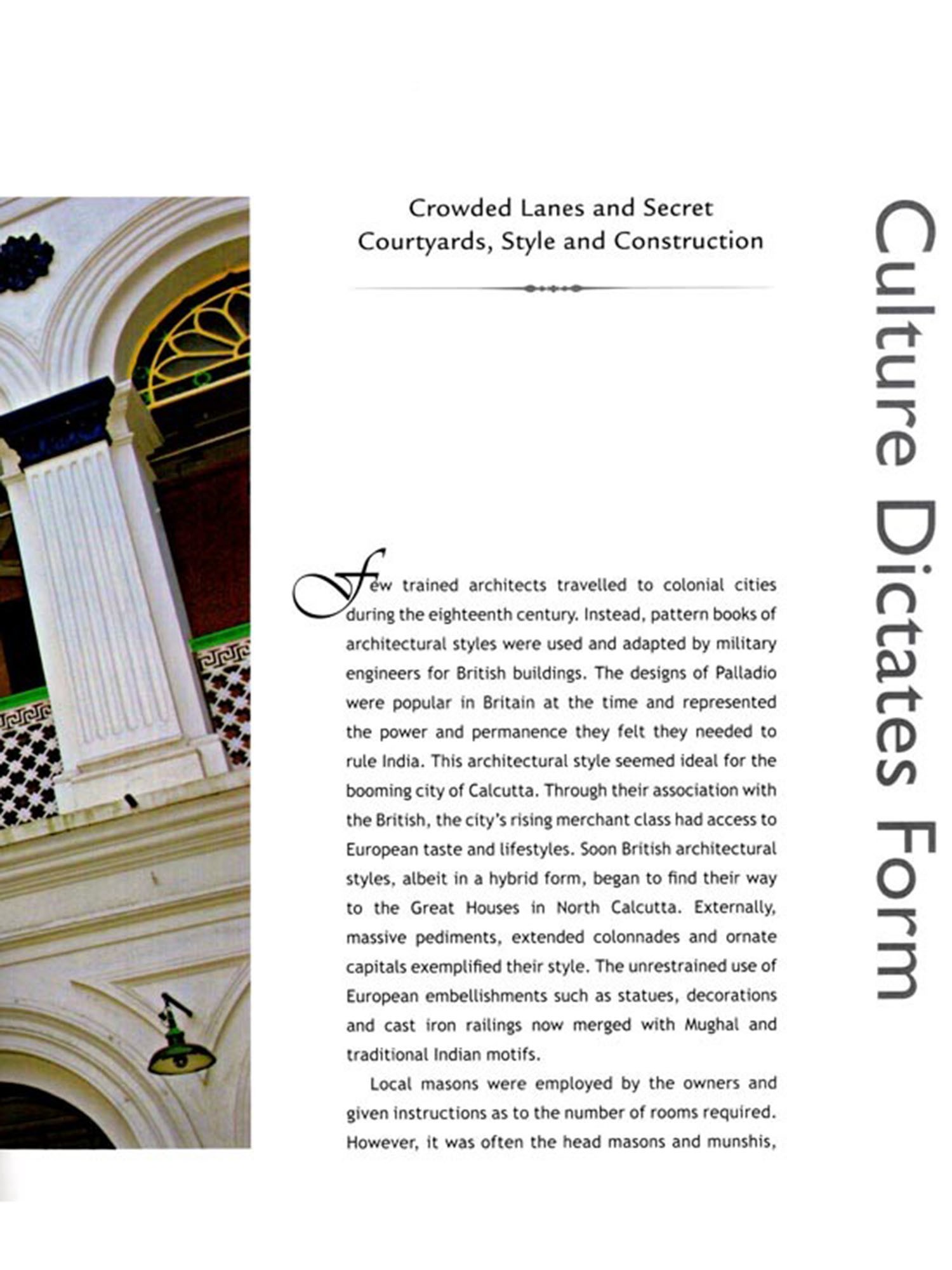 While much has been written and photographed on the city's British architecture and lifestyle, very little has been done by British or Indian writers on the indigenous equivalent.