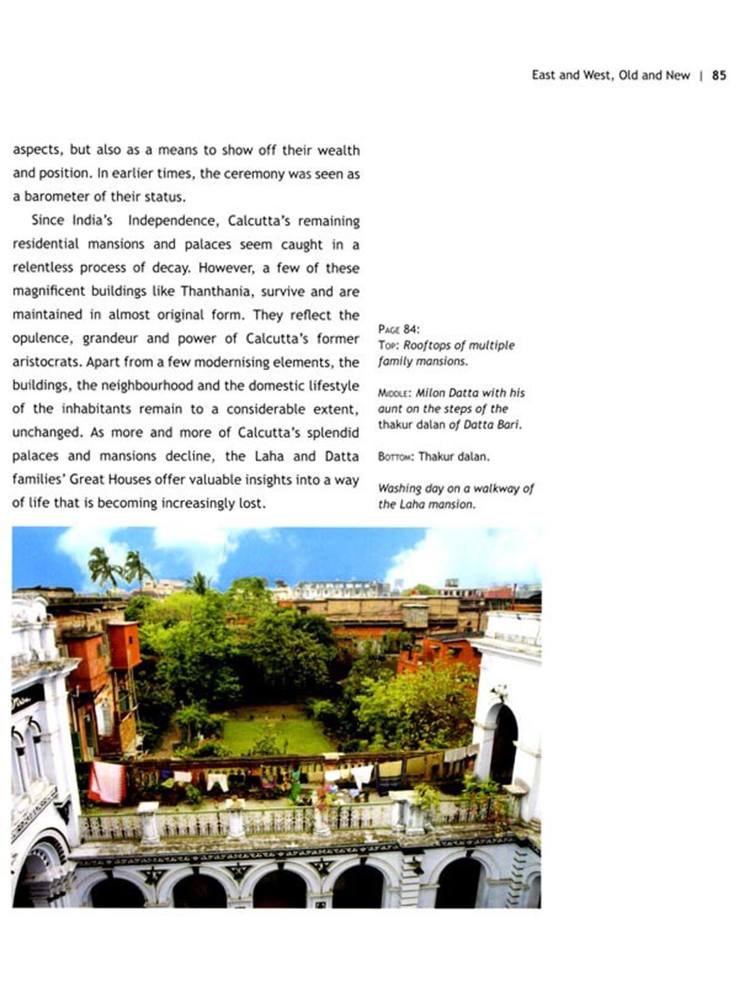 By opening the doors to the homes of former rajahs and merchants we may imagine what life was like for a people who enjoyed British patronage and enormous wealth. Generations of colonial rule has resulted in an architectural style unique to Calcutta. I have endeavoured to highlight this hybrid architectural style of the Great Houses and their condition today, striving to exist in a city that seems oblivious to their fate. They are an important thread in the tapestry of Calcutta's history.