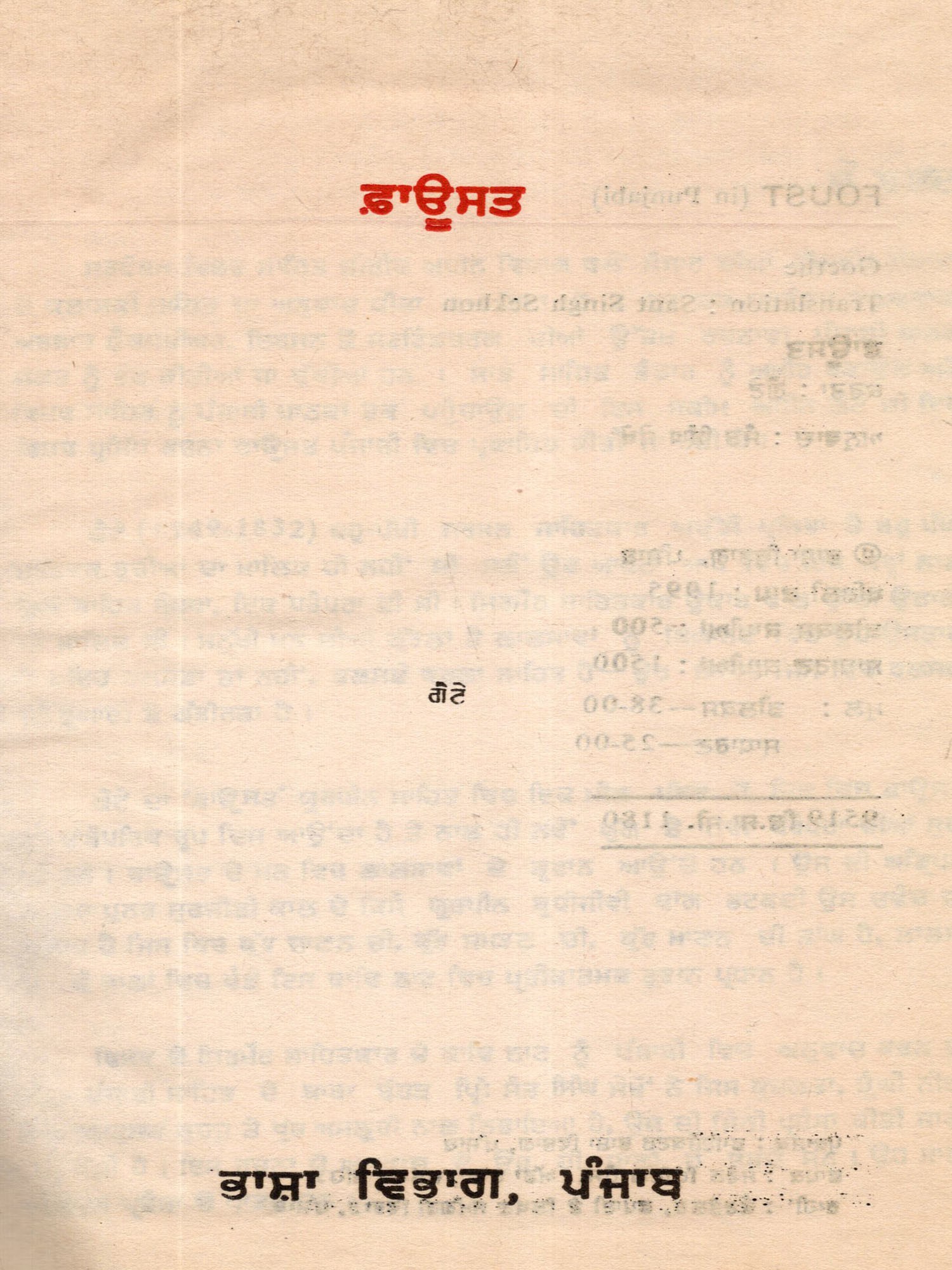 Sri Guru Granth Sahib (A Descriptive Bibliography of Punjabi Manuscripts)(An Old and Rare Book)