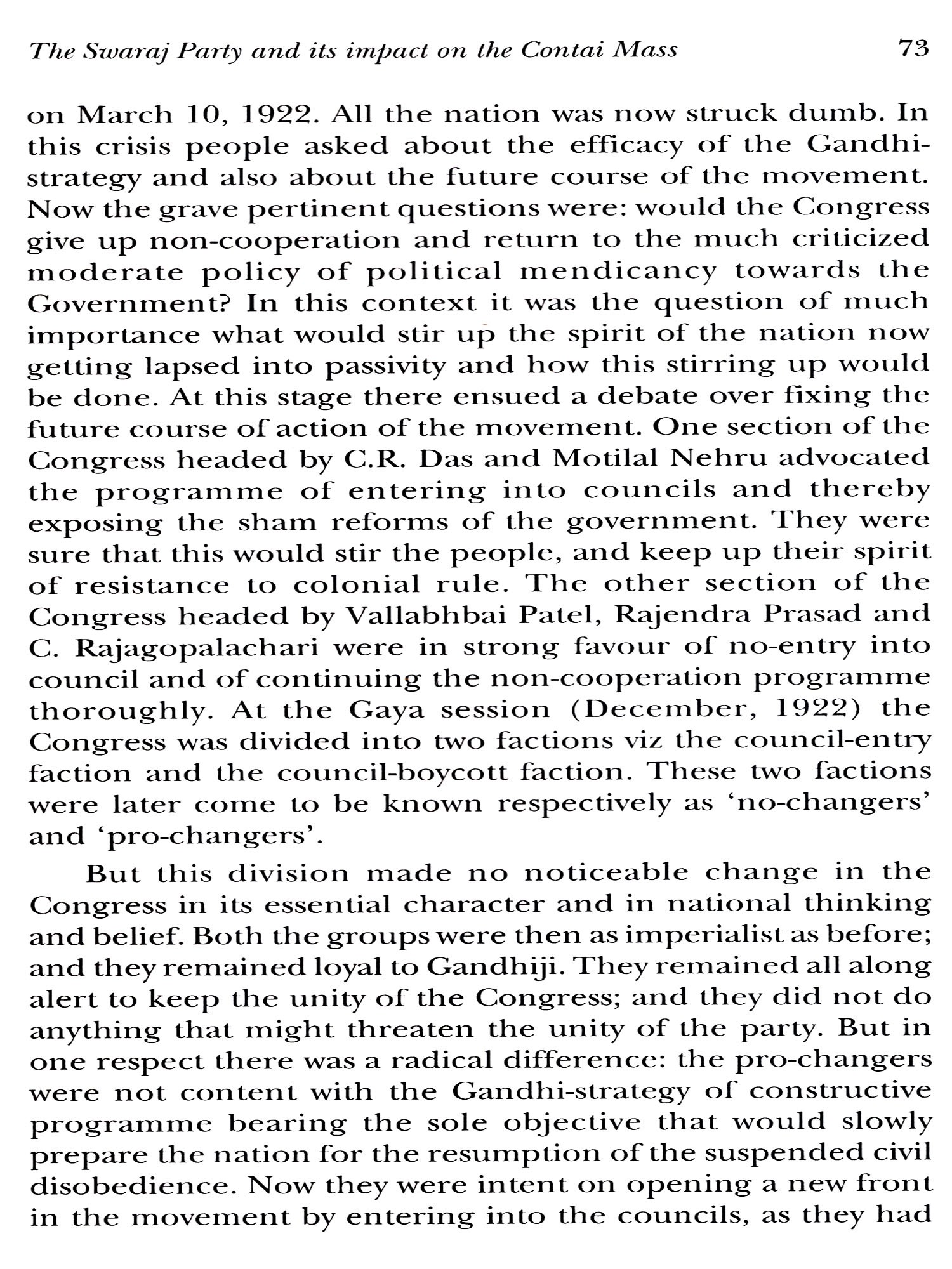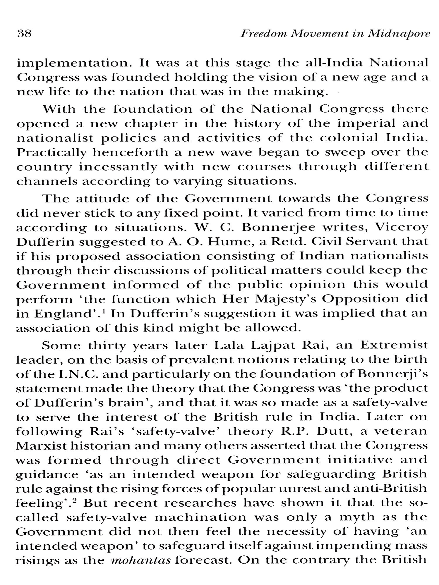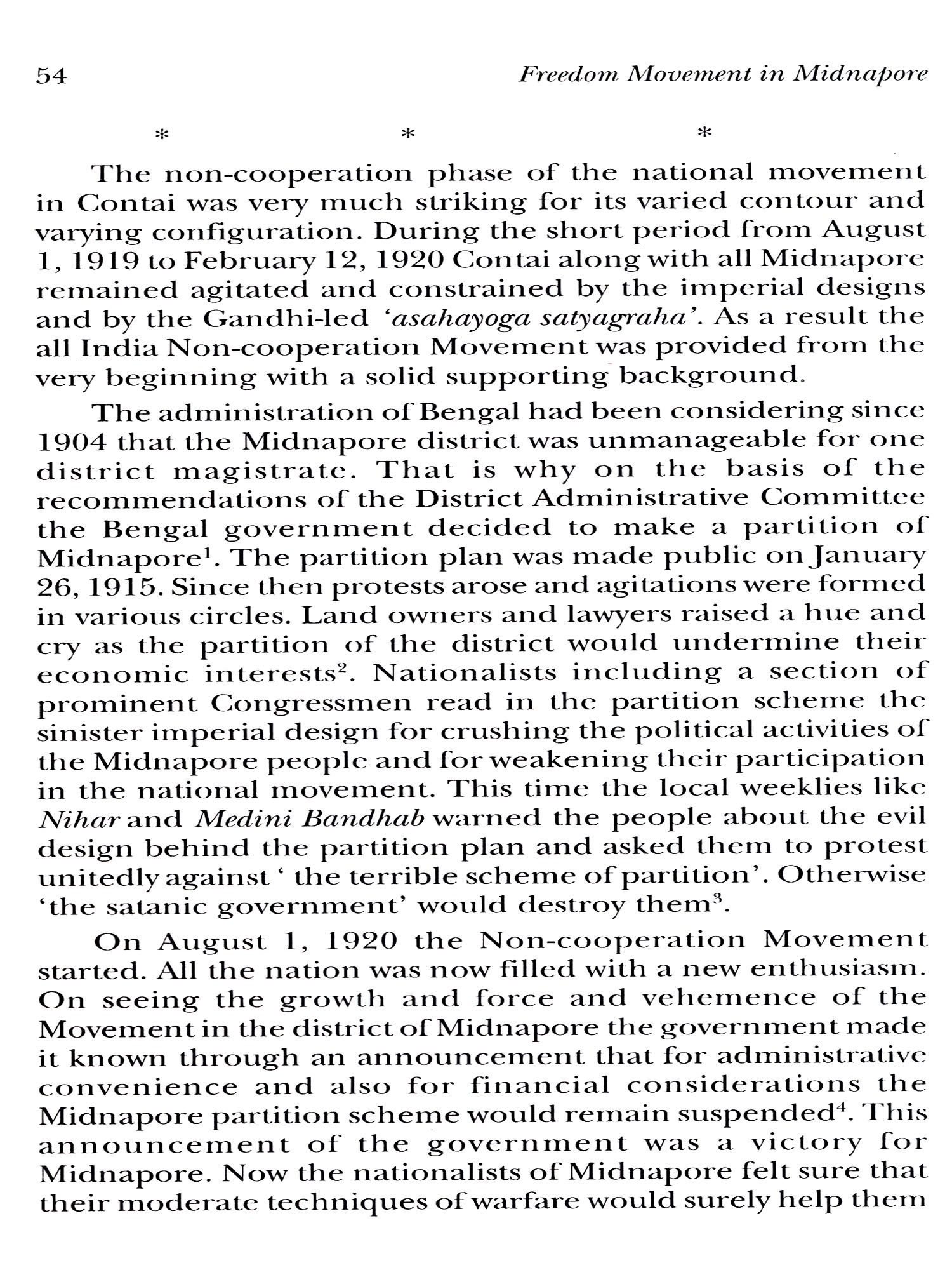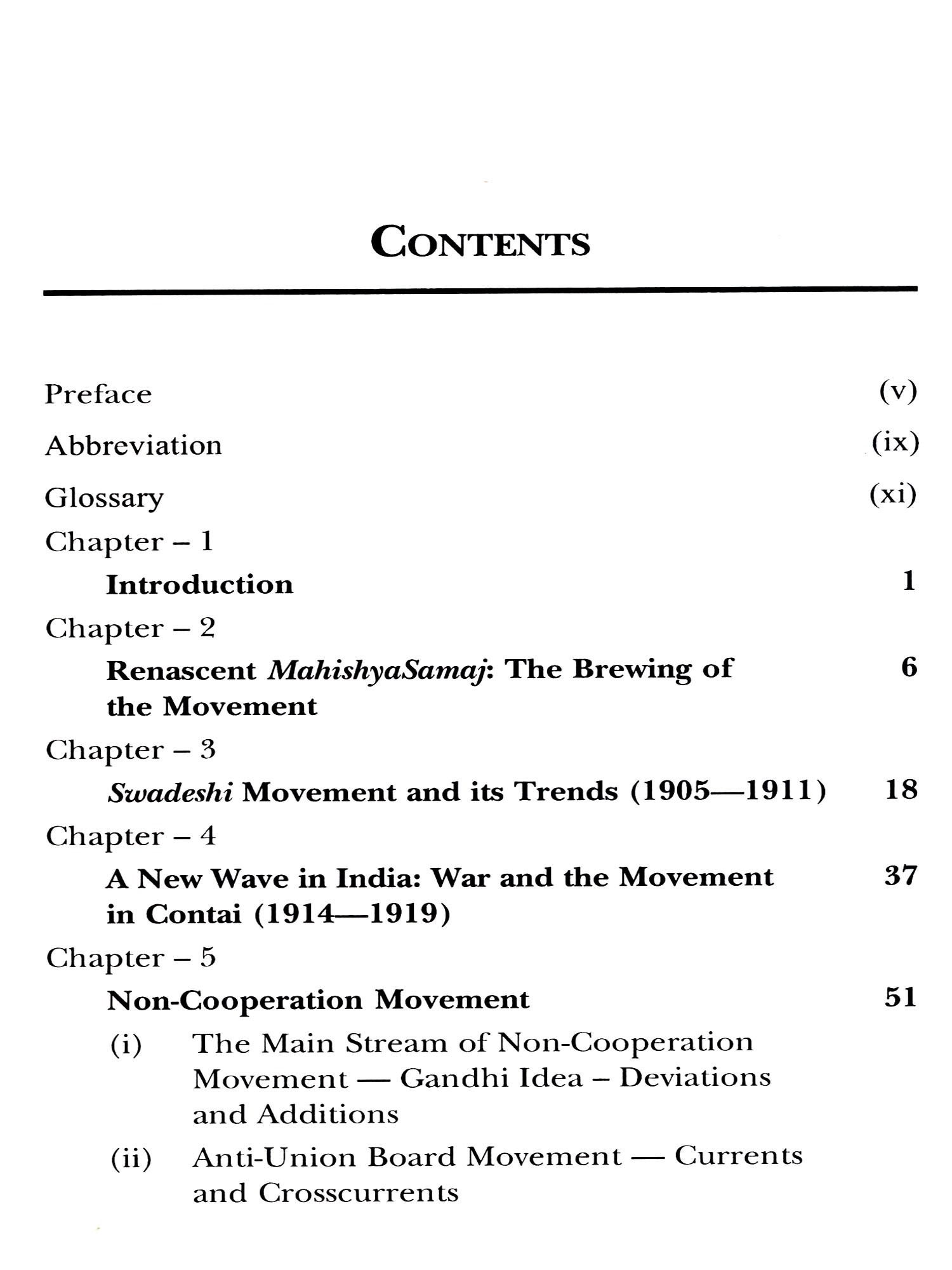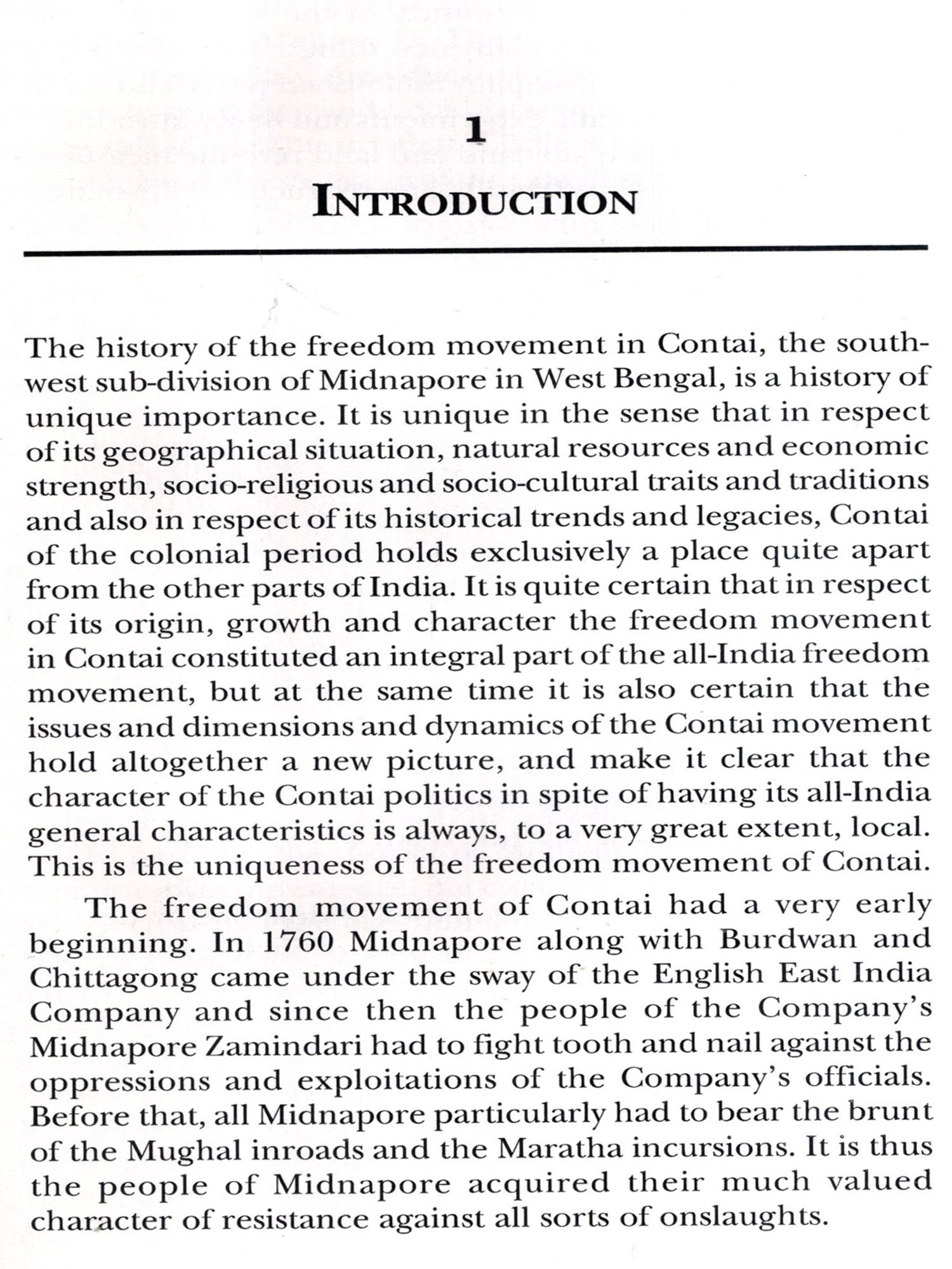 The preface to the present study contains the first words in respect of the issues which impelled me to undertake research work on the history of the national movement of Contai. In my student-life I used to attend Harikatha and Dharmasabha sittings where the kathaks discussed Epic and Puranic tales with emphasis on their essence. In almost all cases, the kathaks emphasized that pride of rulers like king Kamsa of Mathura, the Kurus of Indraprastha and so on had all met with their falls for their pride, arrogance and insolence. They also made it fully clear that a 'pararaj' would not look after the wellbeing of his subjects, so it should have to be rejected and exterminated. The essence of the Harikatha sittings greatly impressed me, and since then I had been thinking for a long time of the epic and puranic base of nationalism of the Contai people. Bankimchandra's Kapalkundala which was written when the author was in government service in Contai, bore in this respect the torch to me a little, and Dr. Amalesh Tripathi's The Extremist Challenge made the point in question fully clear to me. That is why I decided to work on the religious nationalism of the Contai people.