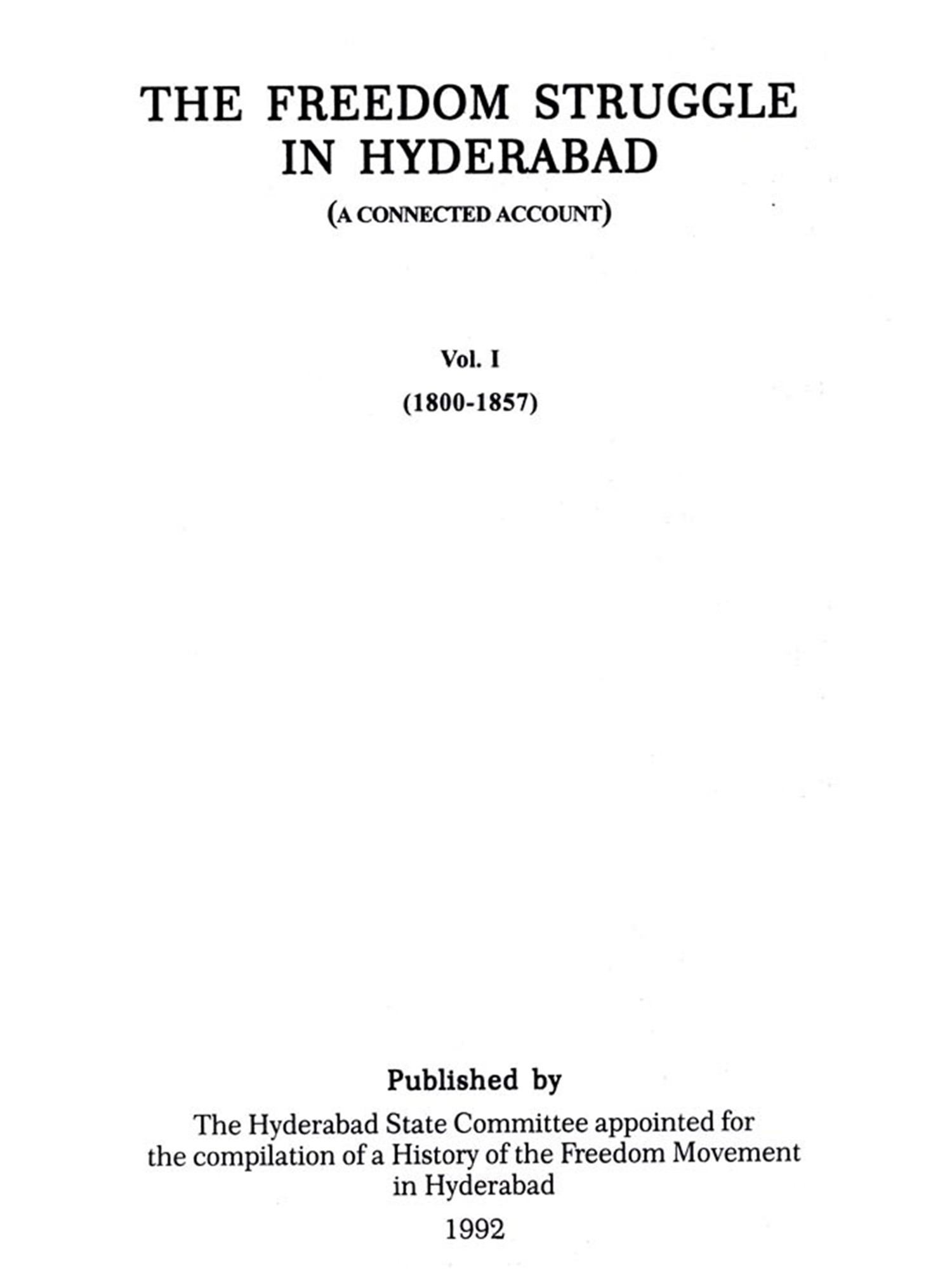 The Freedom Struggle in Hyderabad- A Connected Account (Volume - 1) - 1800-1857