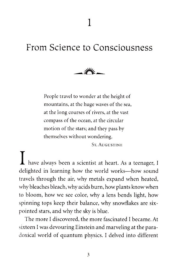 A few weeks later, on a plane from Los Angeles to San Francisco, I opened an old book I had recently come across. The author, a Dutchman writing in the 1920s, was not saying anything that was new to me, but he reminded me of the processes of perception and the way we construct our experience of reality. My readings in philosophy, particularly the writings of Immanuel Kant, came flooding back; so did my studies in physics on the nature of light, and my explorations into Eastern philosophy and meditation.